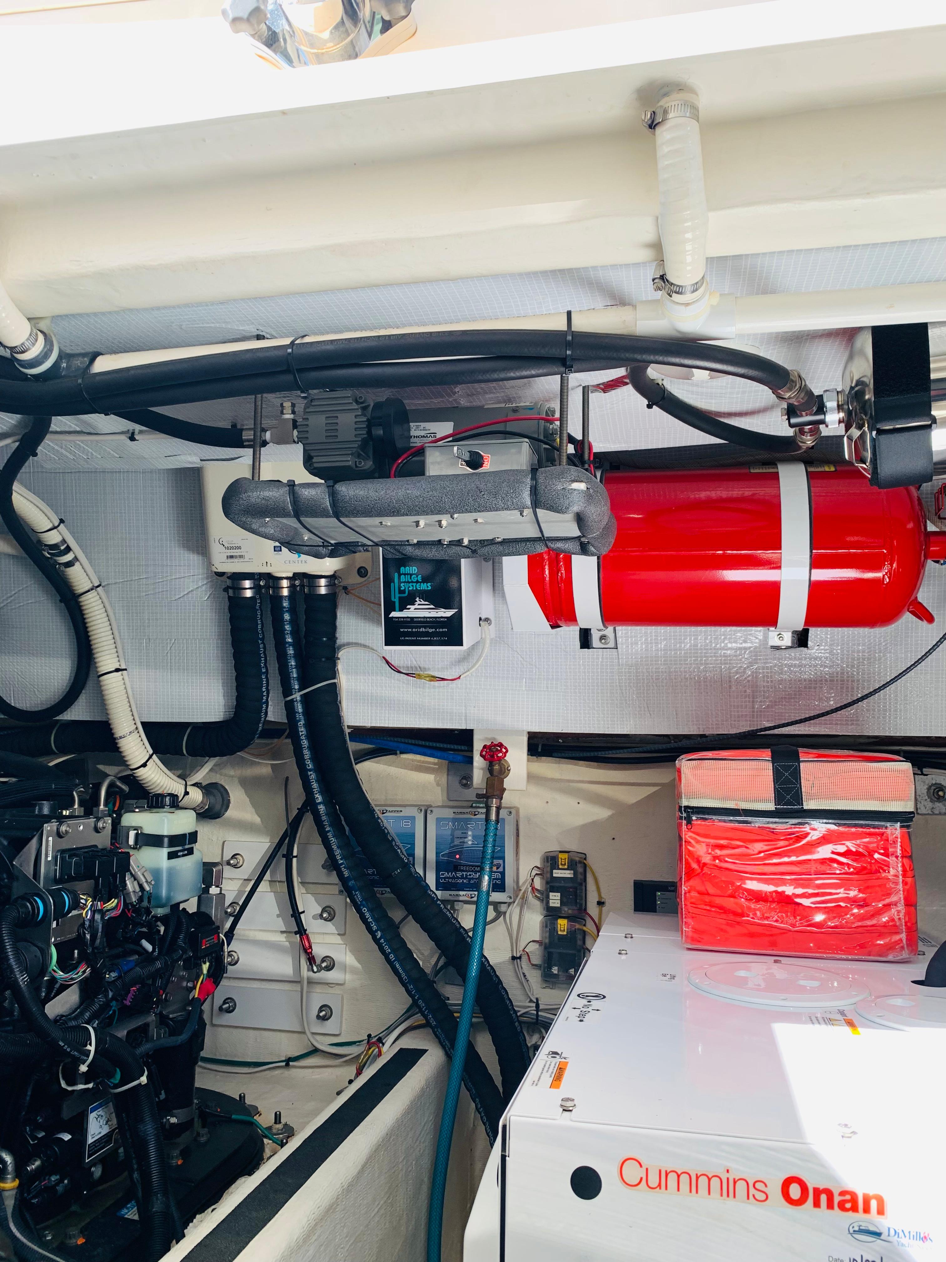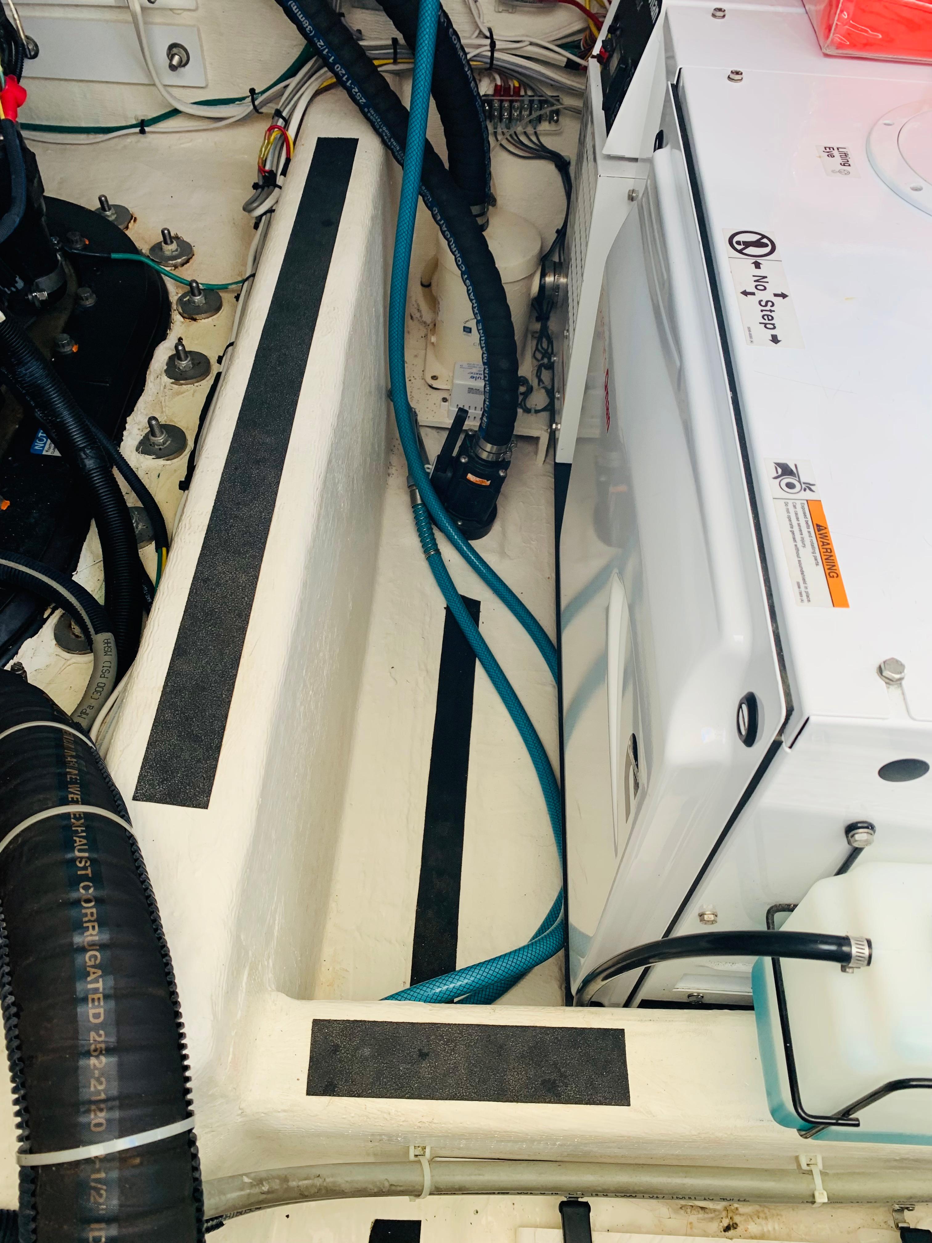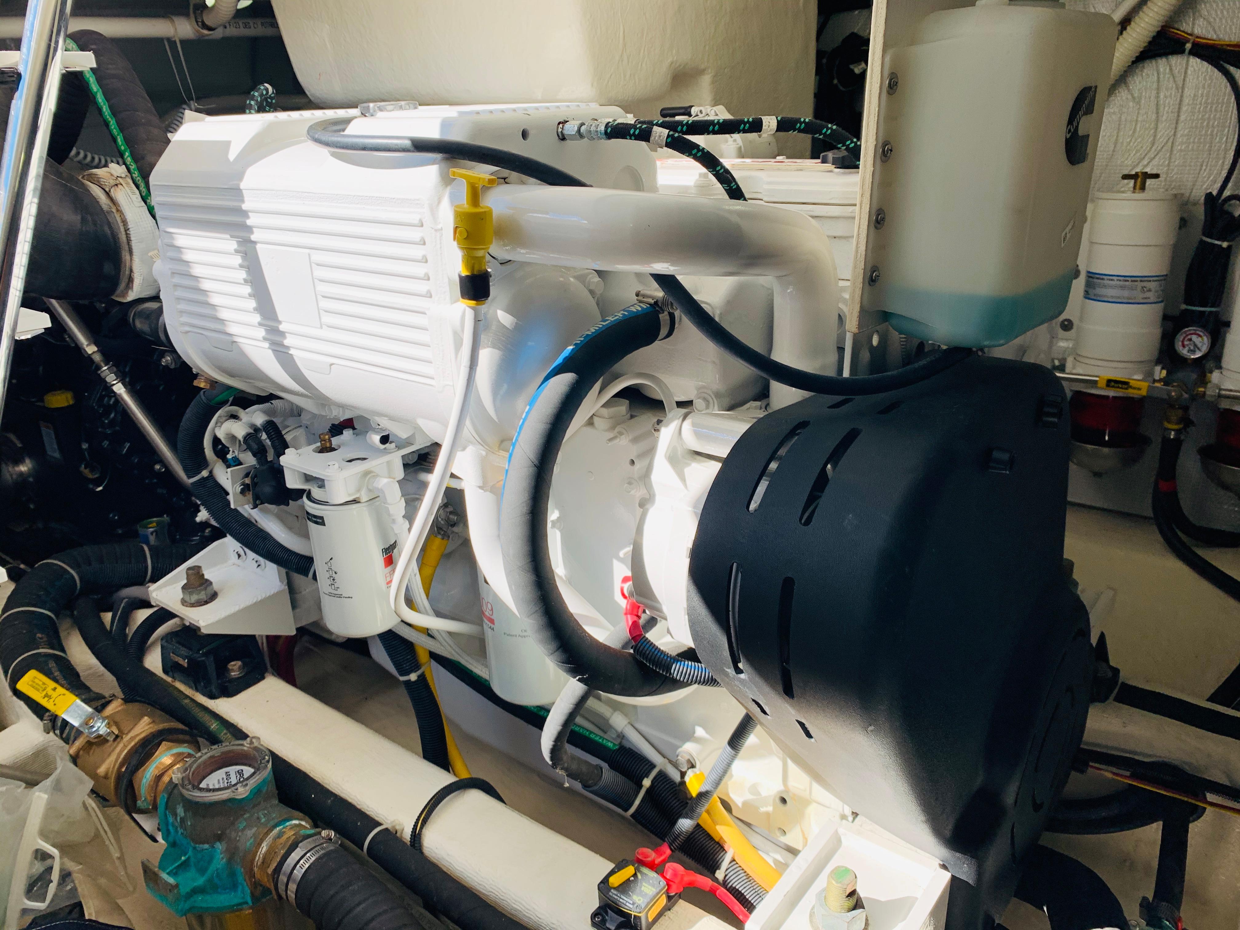 • Onan 11.5 kw generator including: interface to Cummins Vessel View display, dedicated start battery, water lift muffler, cooling water intake strainer, sound shield, transfer switch