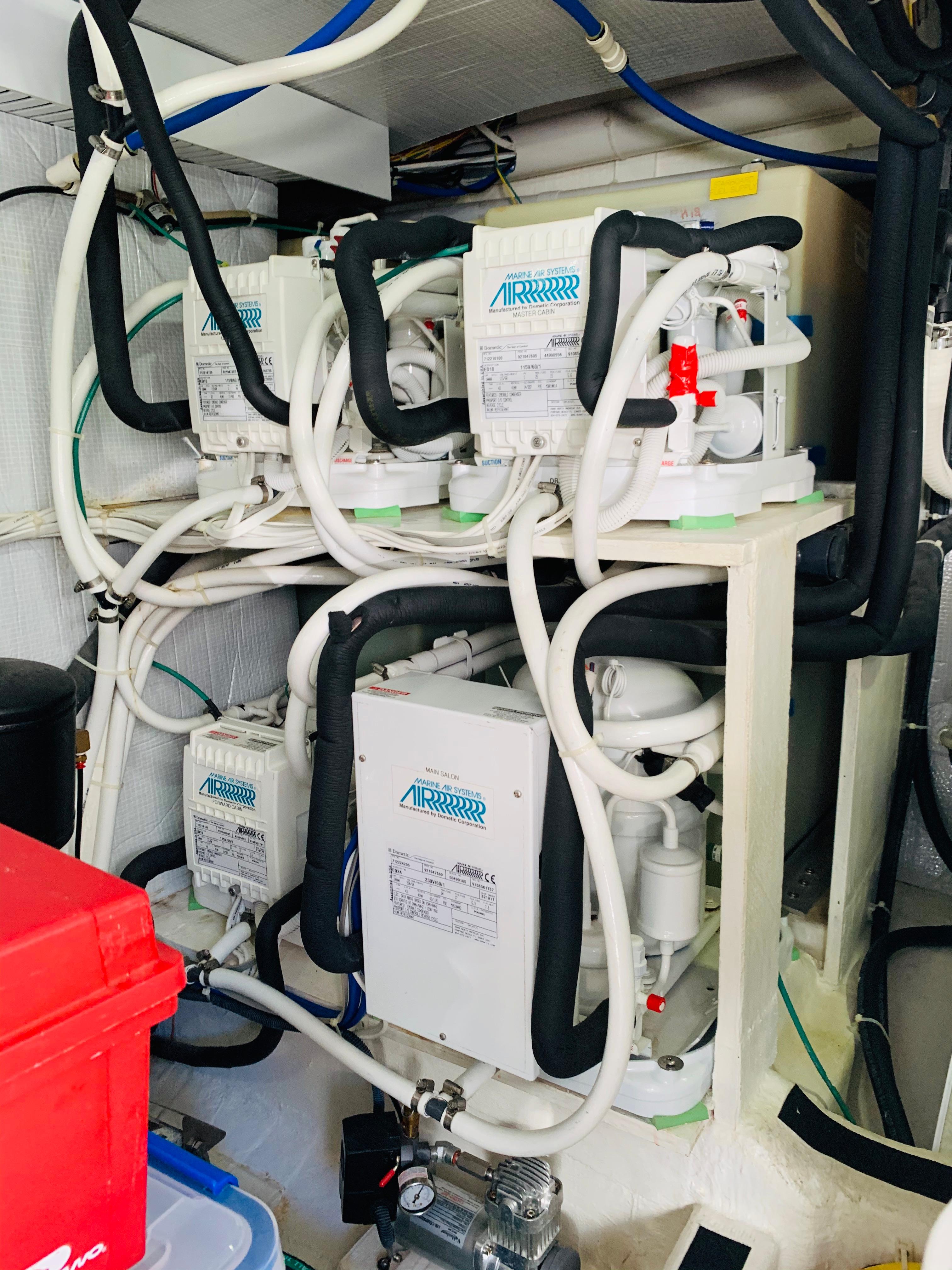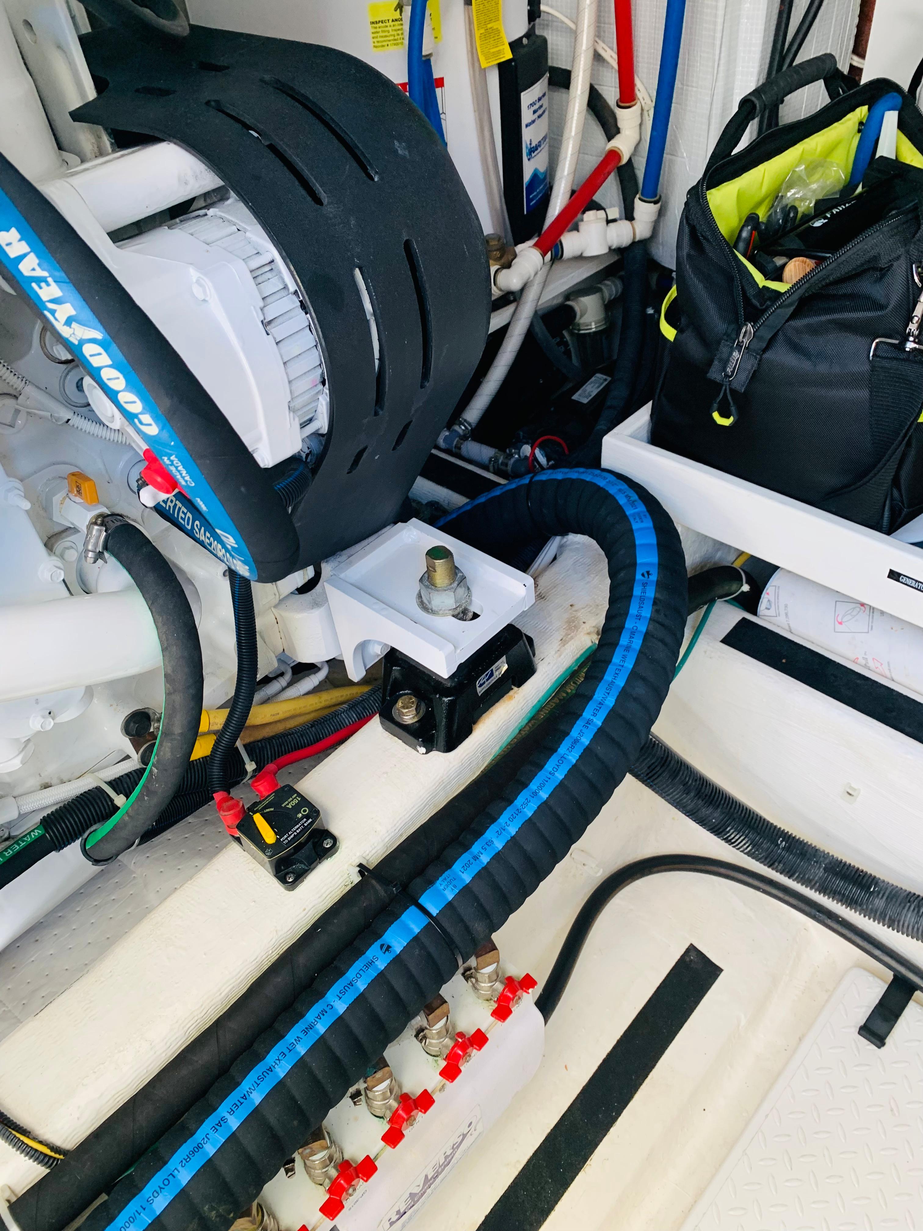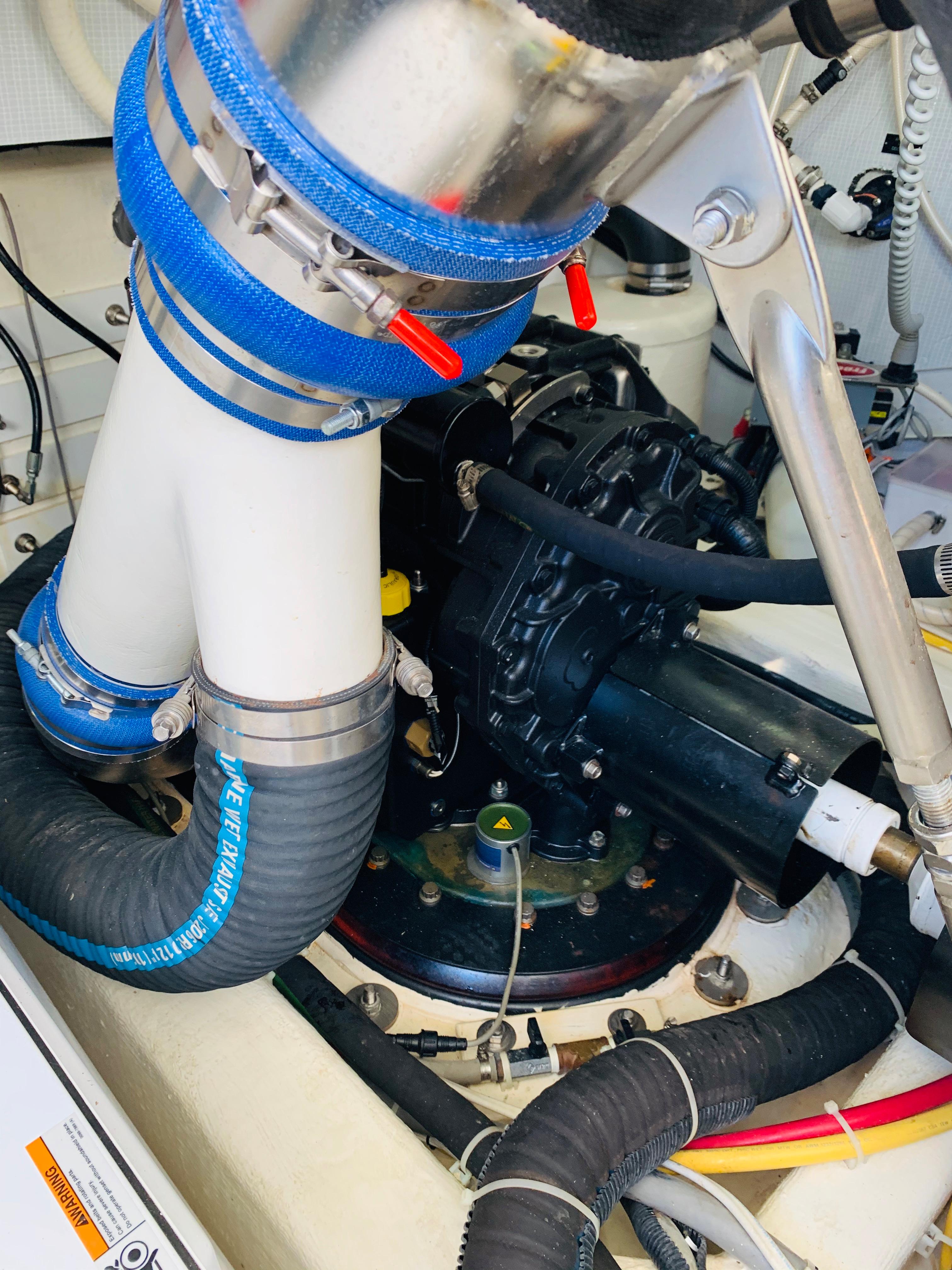• Onan 11.5 kw generator including: interface to Cummins Vessel View display, dedicated start battery, water lift muffler, cooling water intake strainer, sound shield, transfer switch