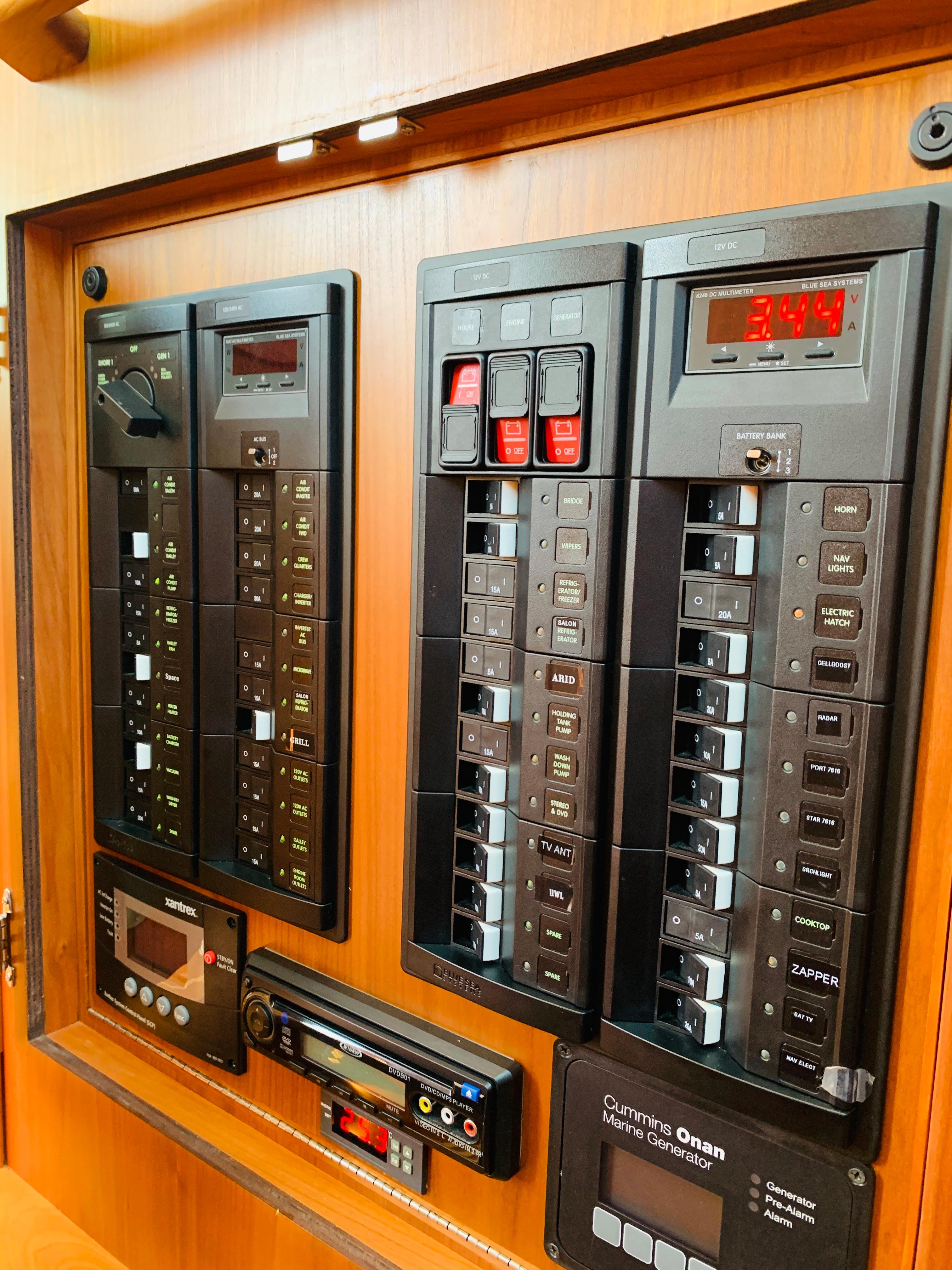 • BlueSeas electrical panel, AC/DC with multi-meters