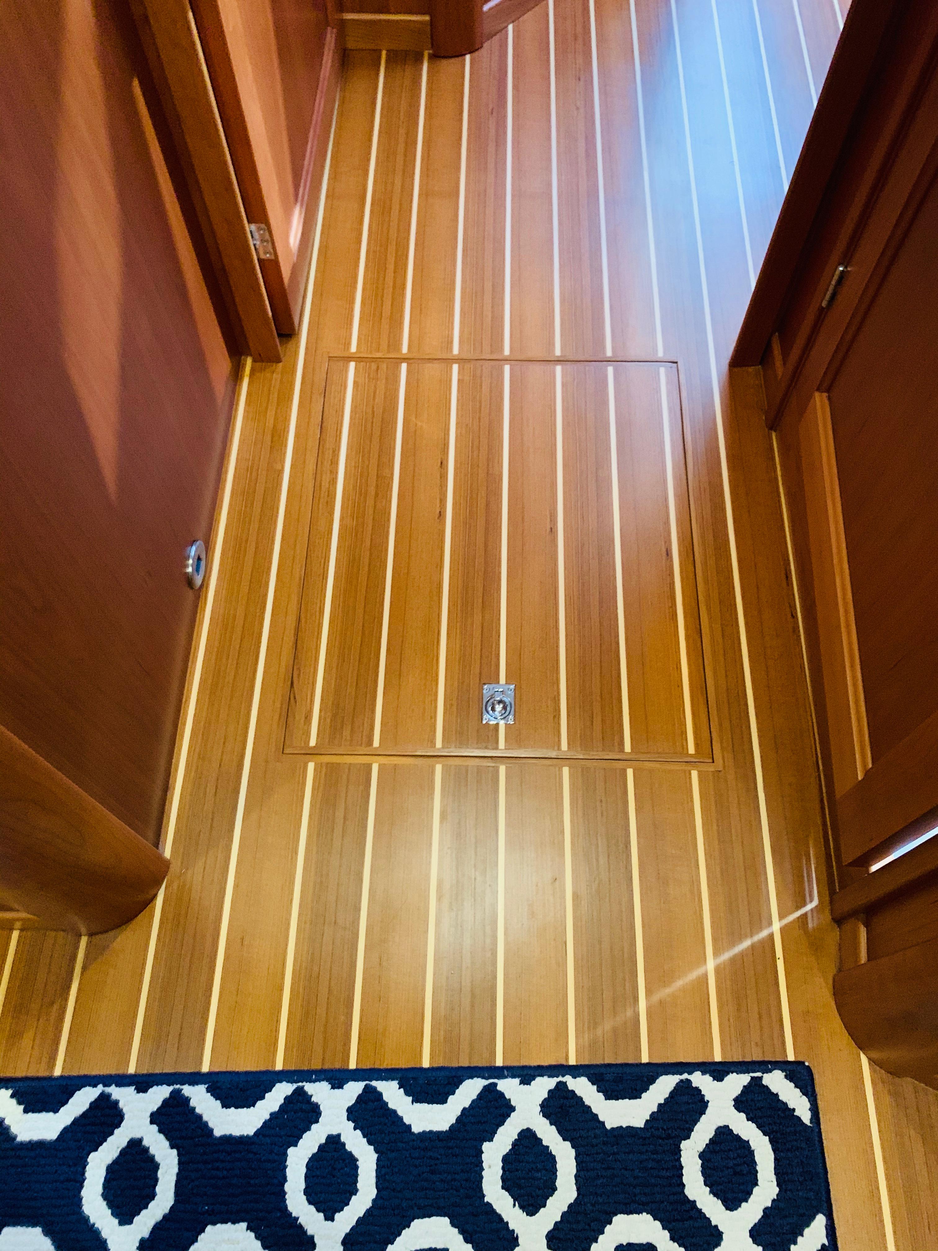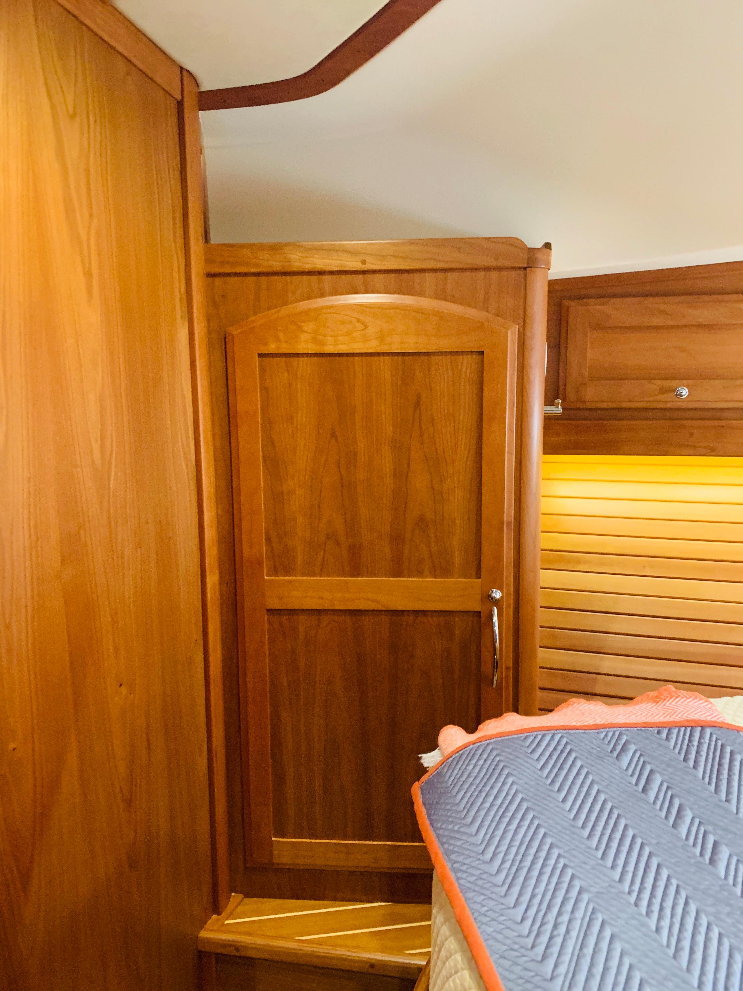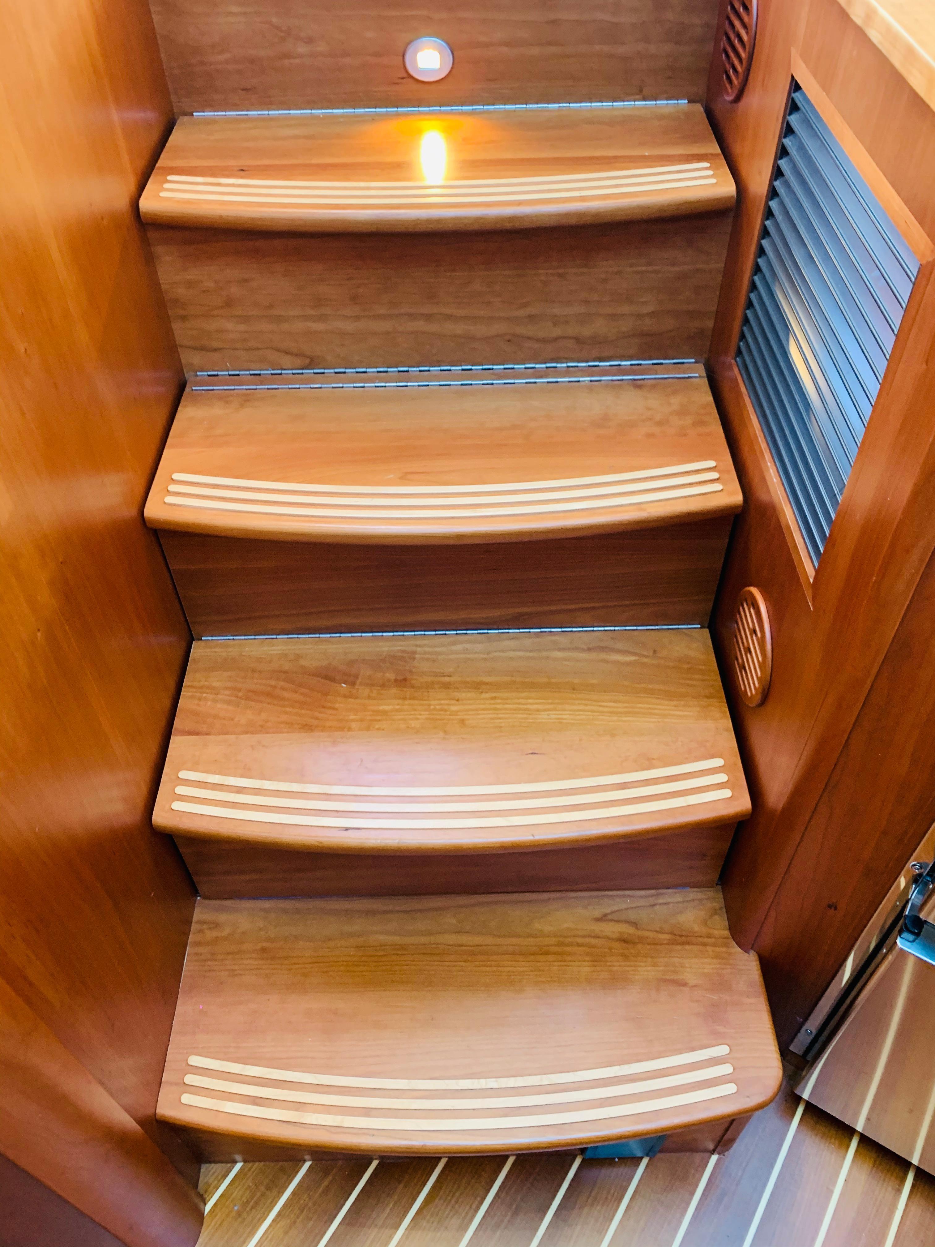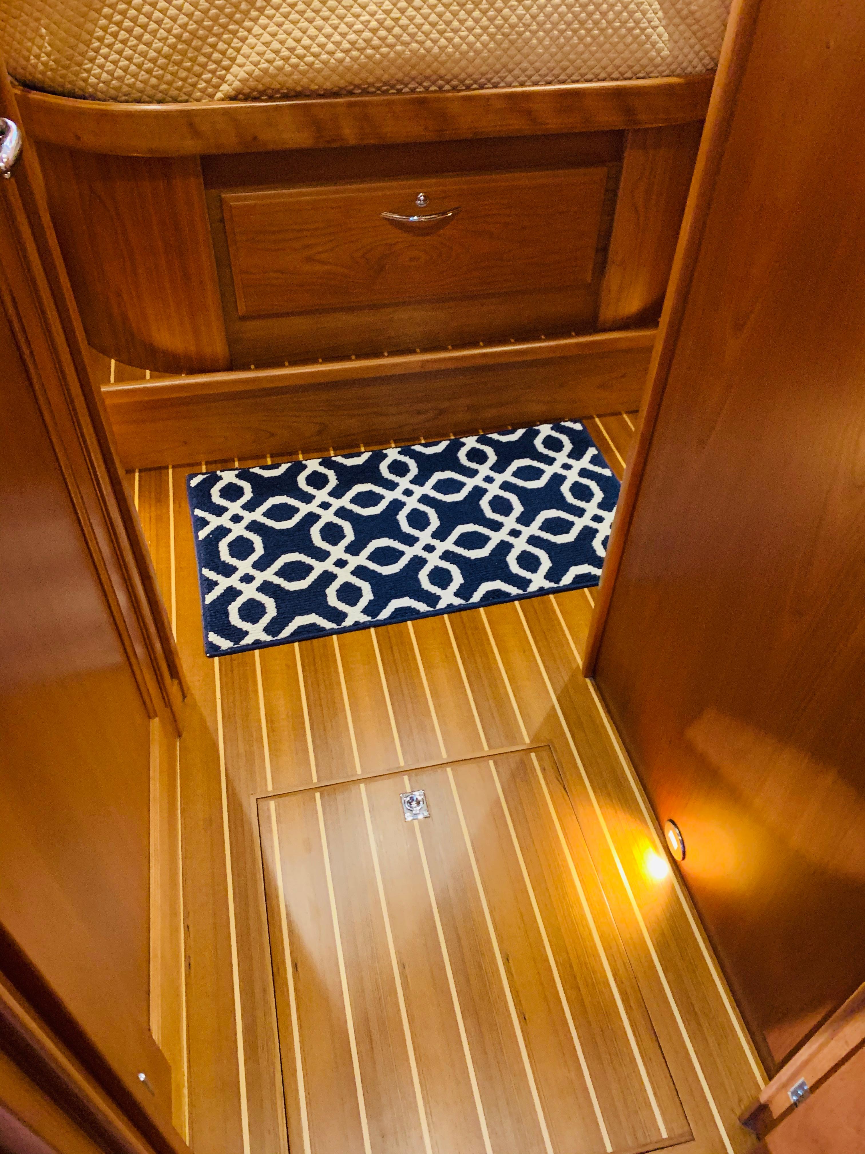 • Crew Quarters: Enclosed head, crew mattress and Ultraleather seat and back rest (3) cushions in utility room. Note: COMBO washer /dryer, no notch in mattress. Install cherry treads in utility room. Replace utility lights with cabin lights. Add U/L wall covering. Install teak and holly floor. Install TV & outlets