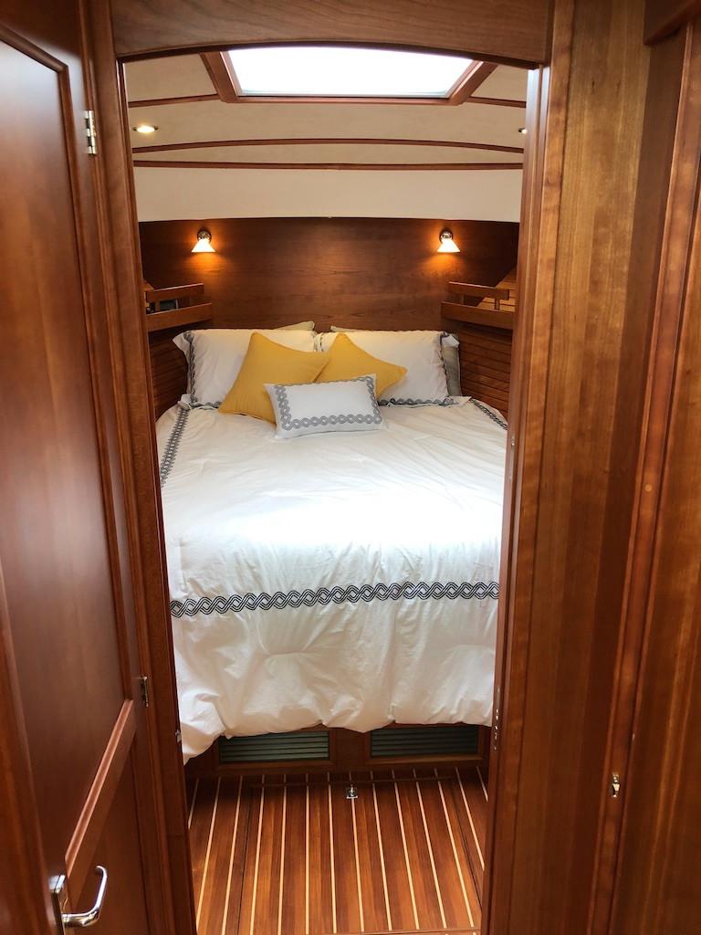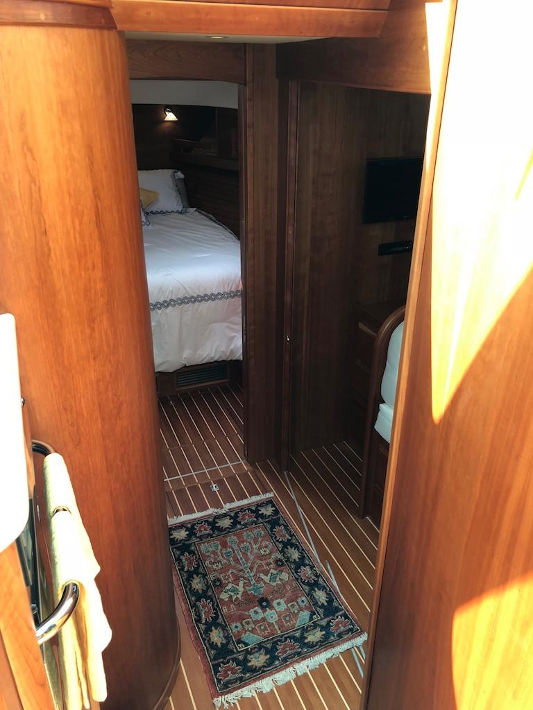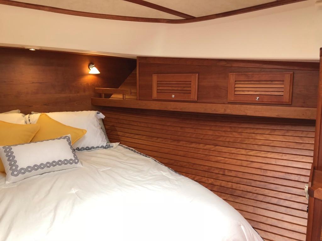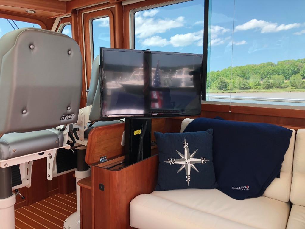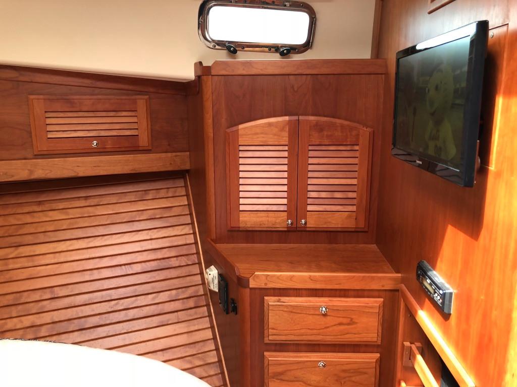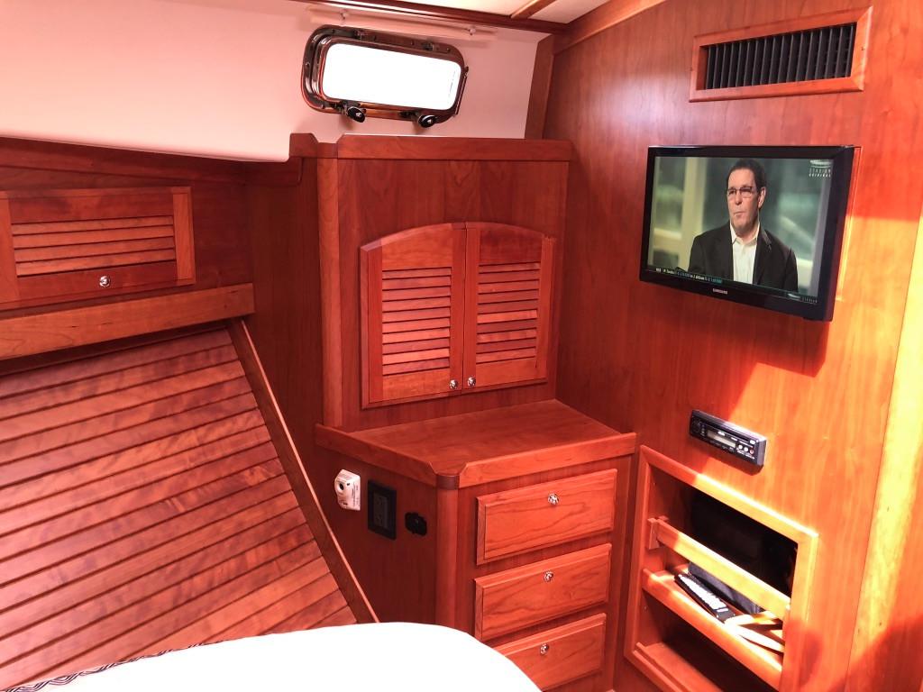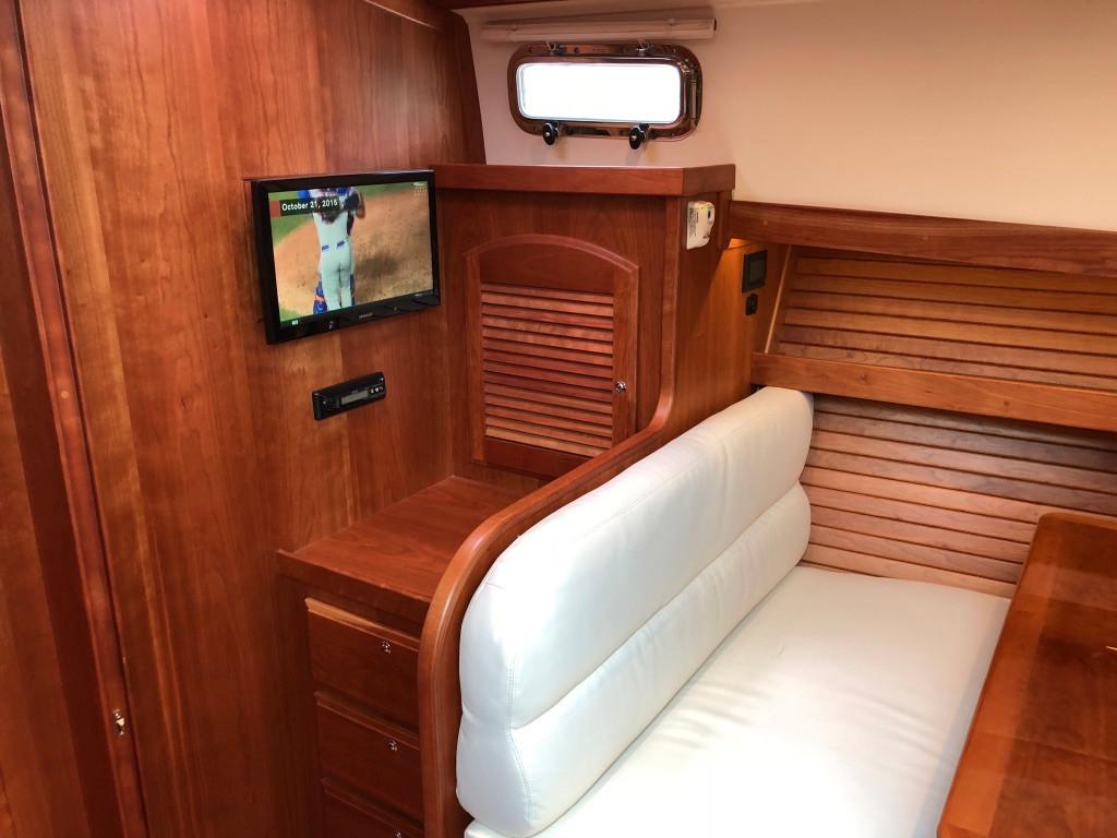Recessed shelf with fiddle on starboard main bulkhead sized for 19” flat screen TV and DVD player