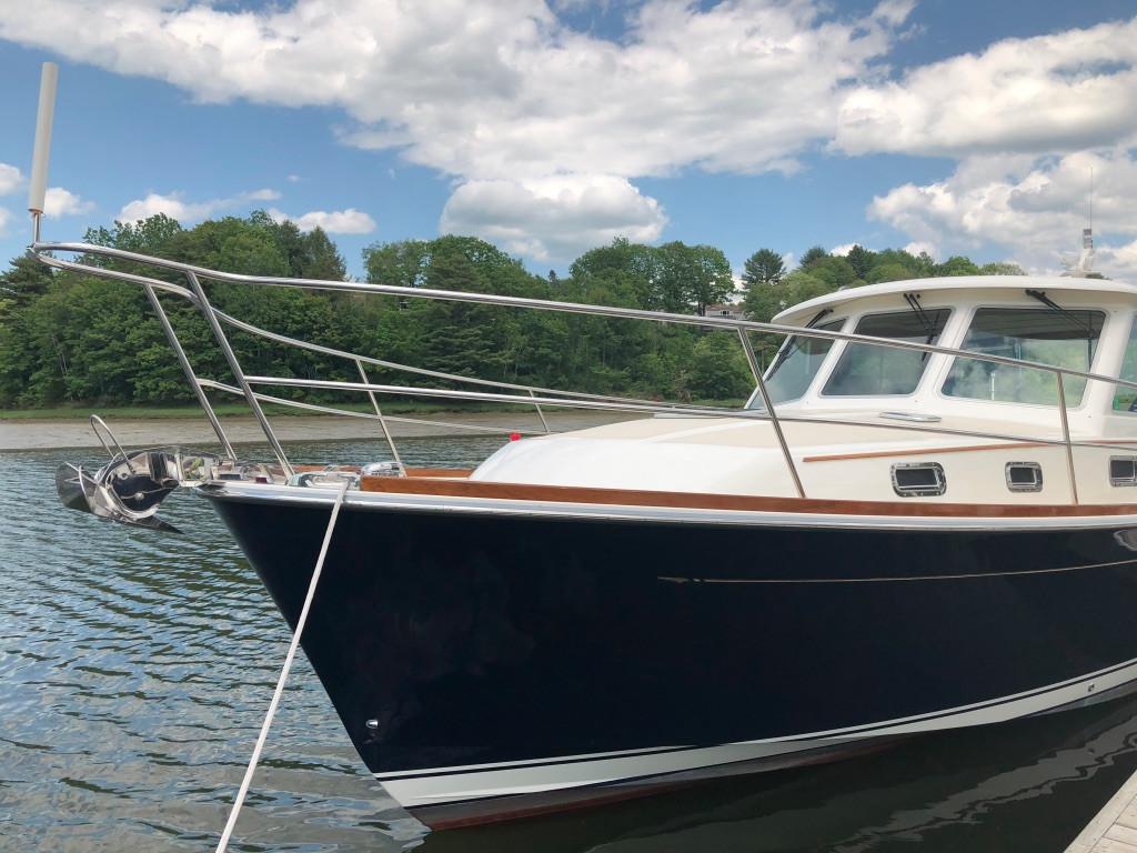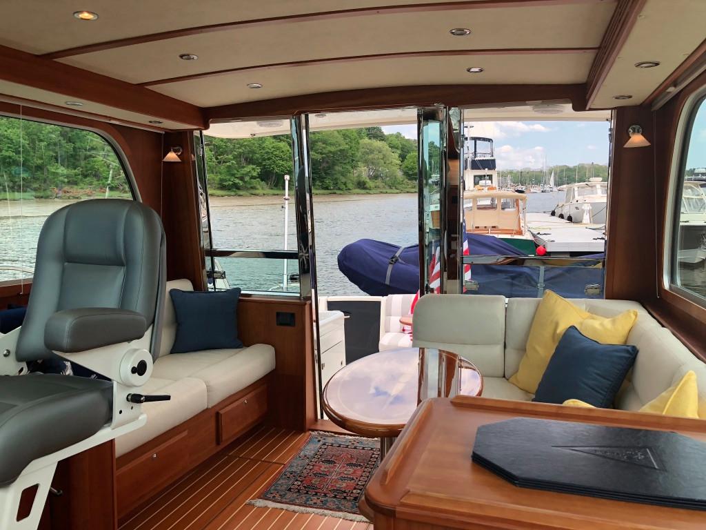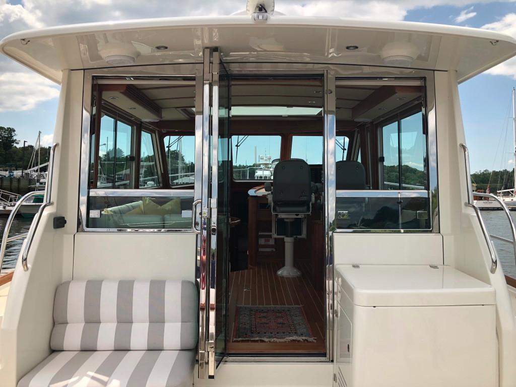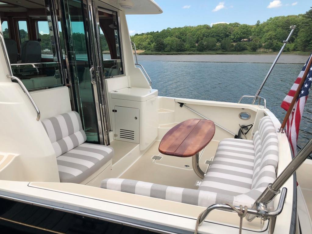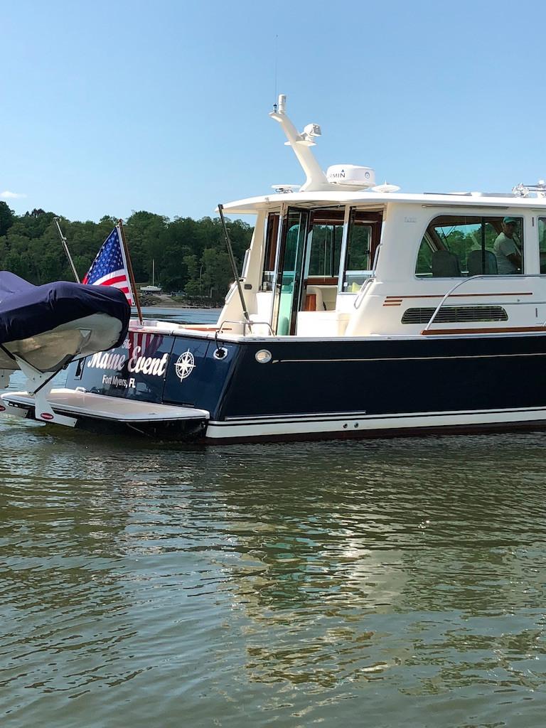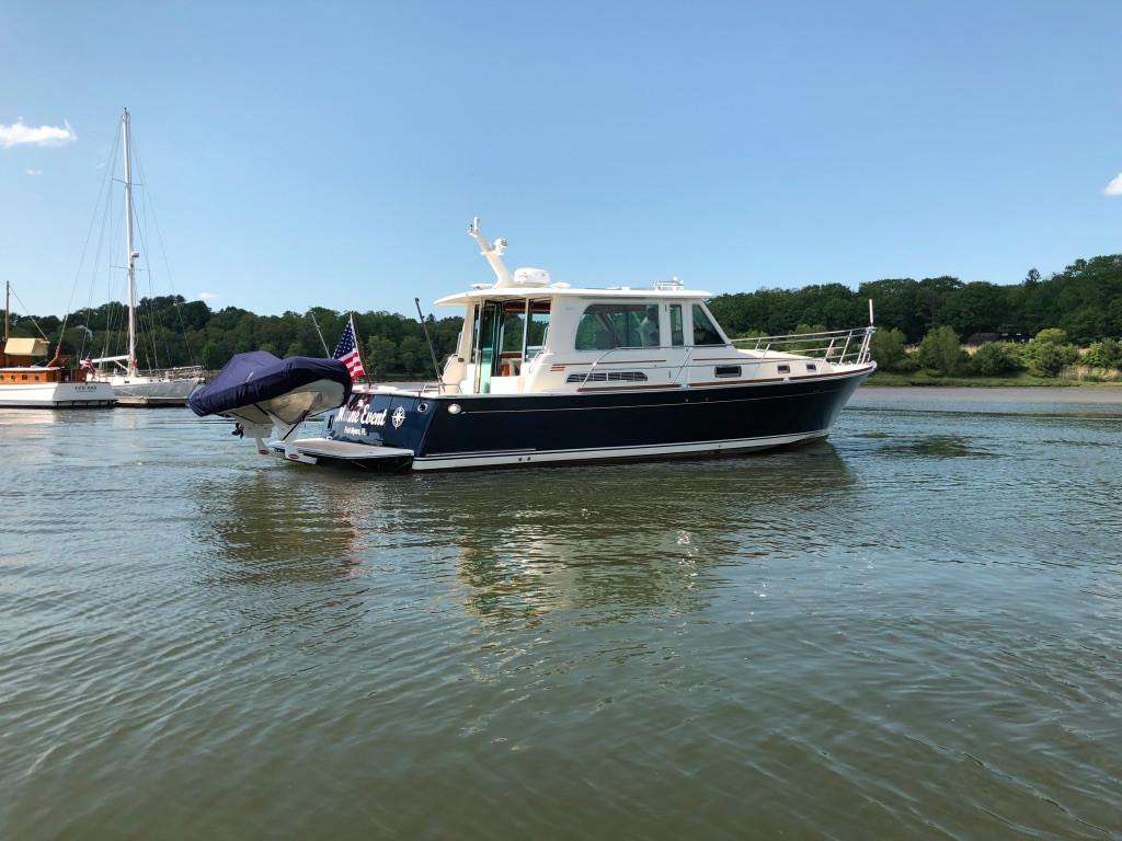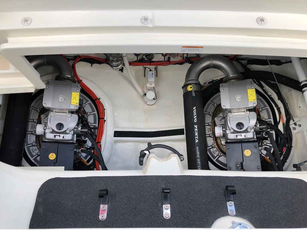 Low hour Volvo IPS 42 with Garmin electronics and more. Flag Blue hull color with Sabre White decks and Beige non-skid. Very clean and well maintained.