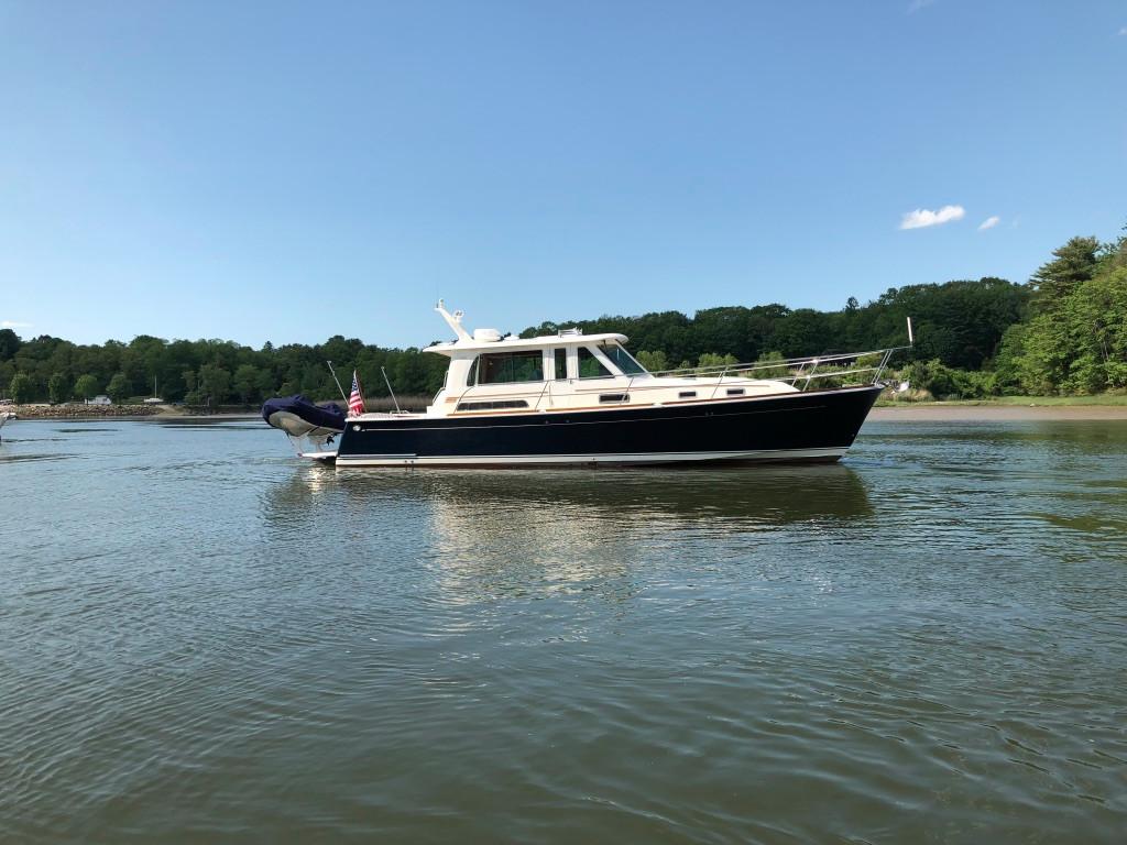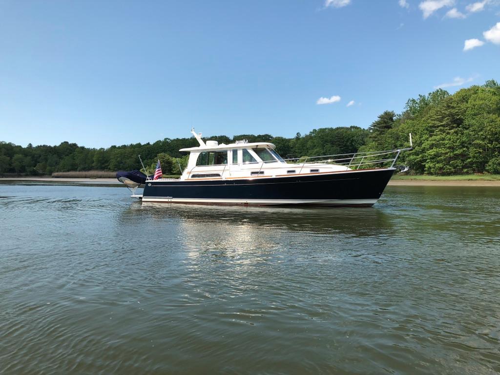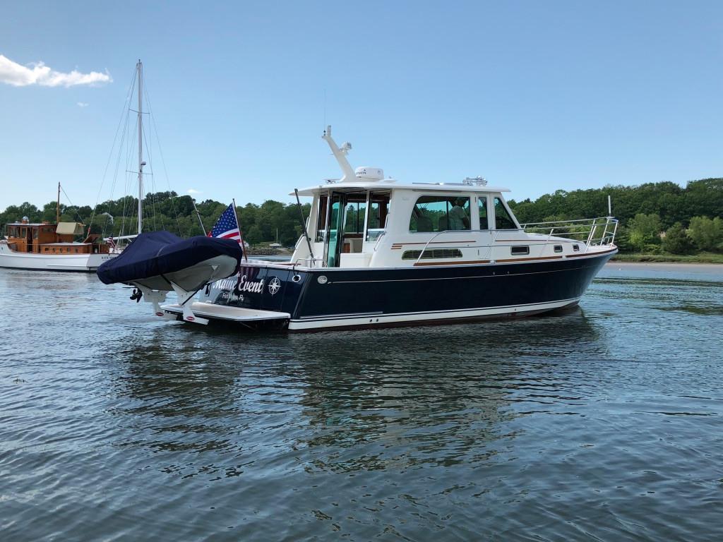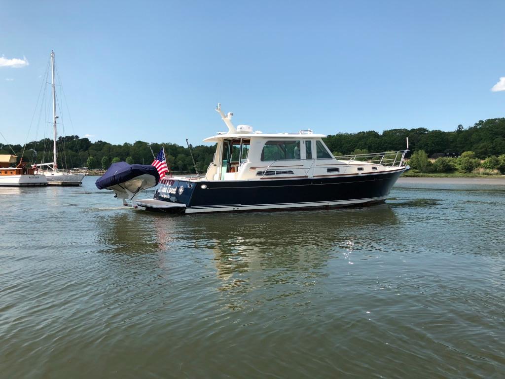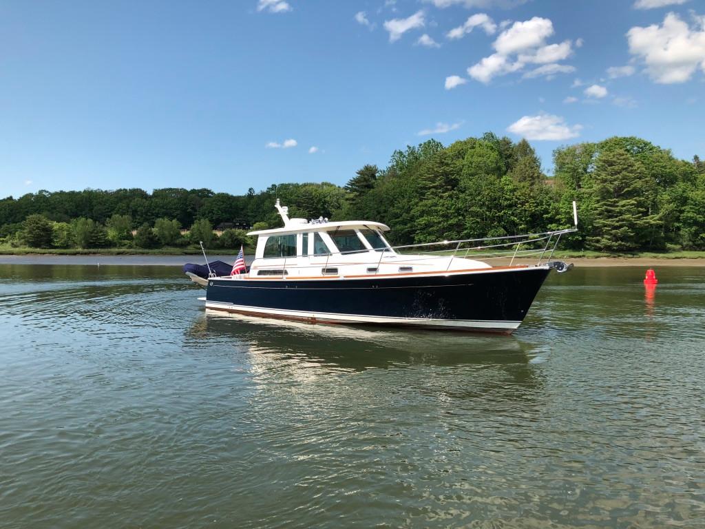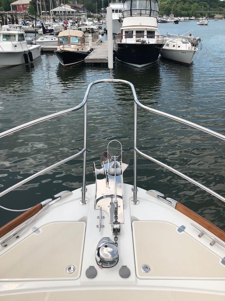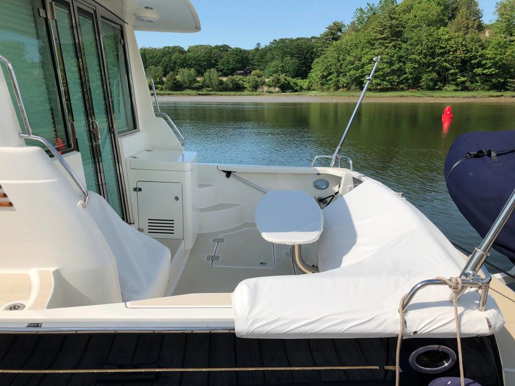 Low hour Volvo IPS 42 with Garmin electronics and more. Flag Blue hull color with Sabre White decks and Beige non-skid. Very clean and well maintained.