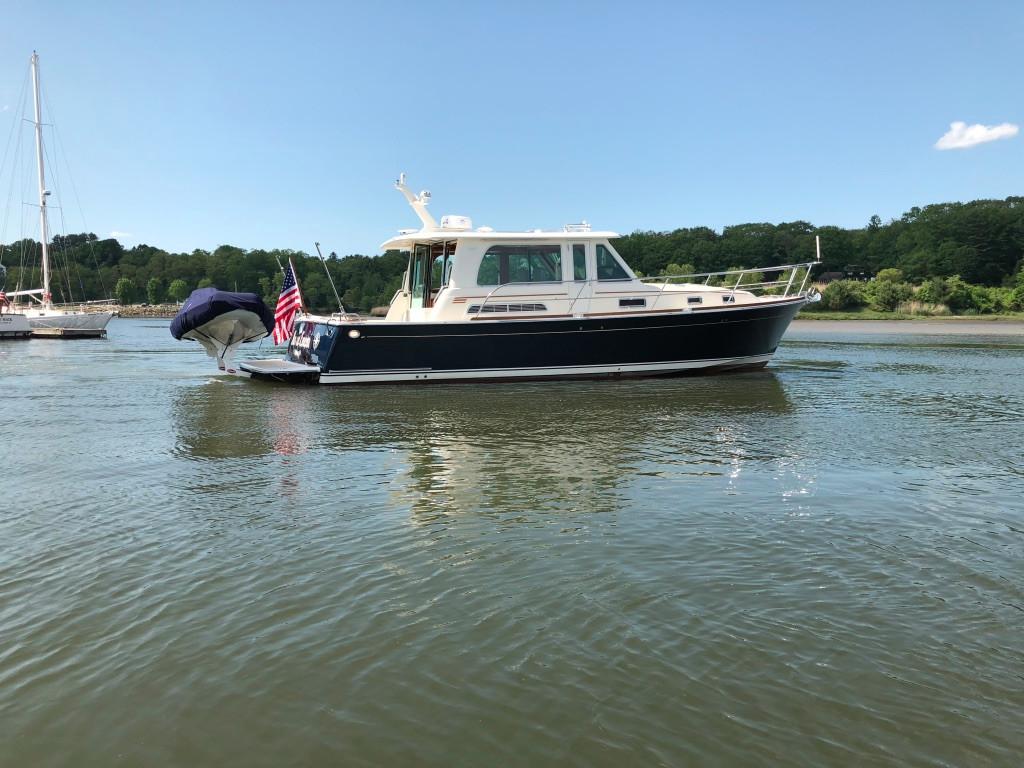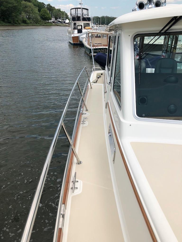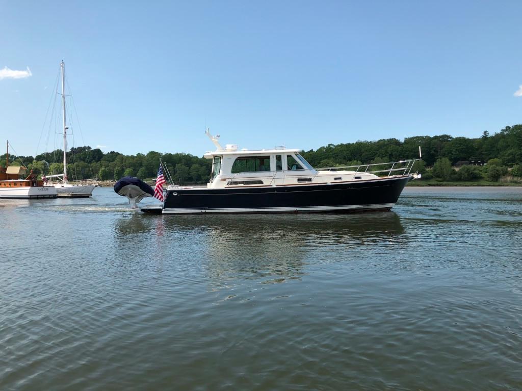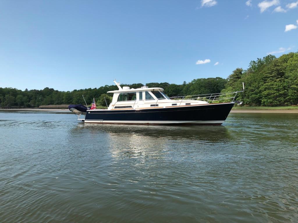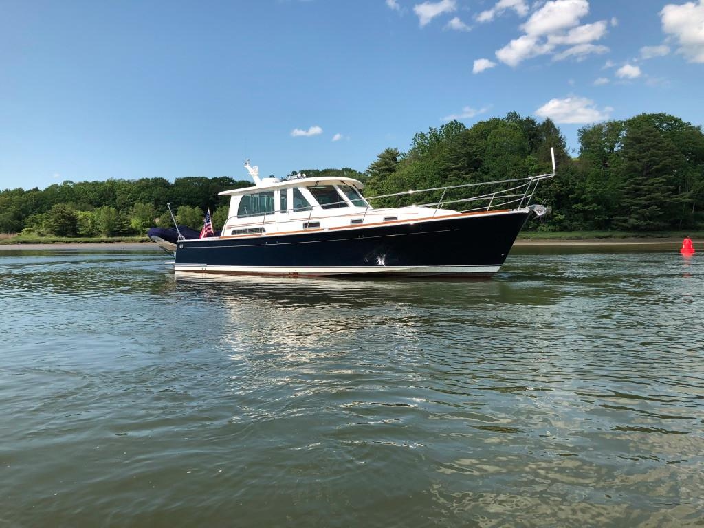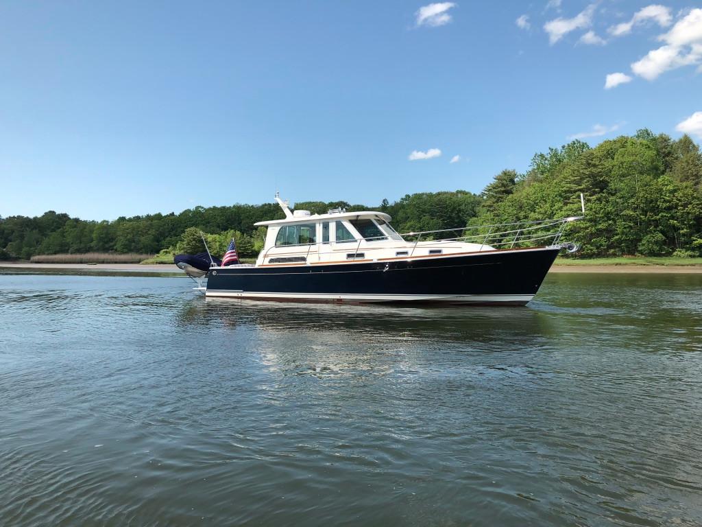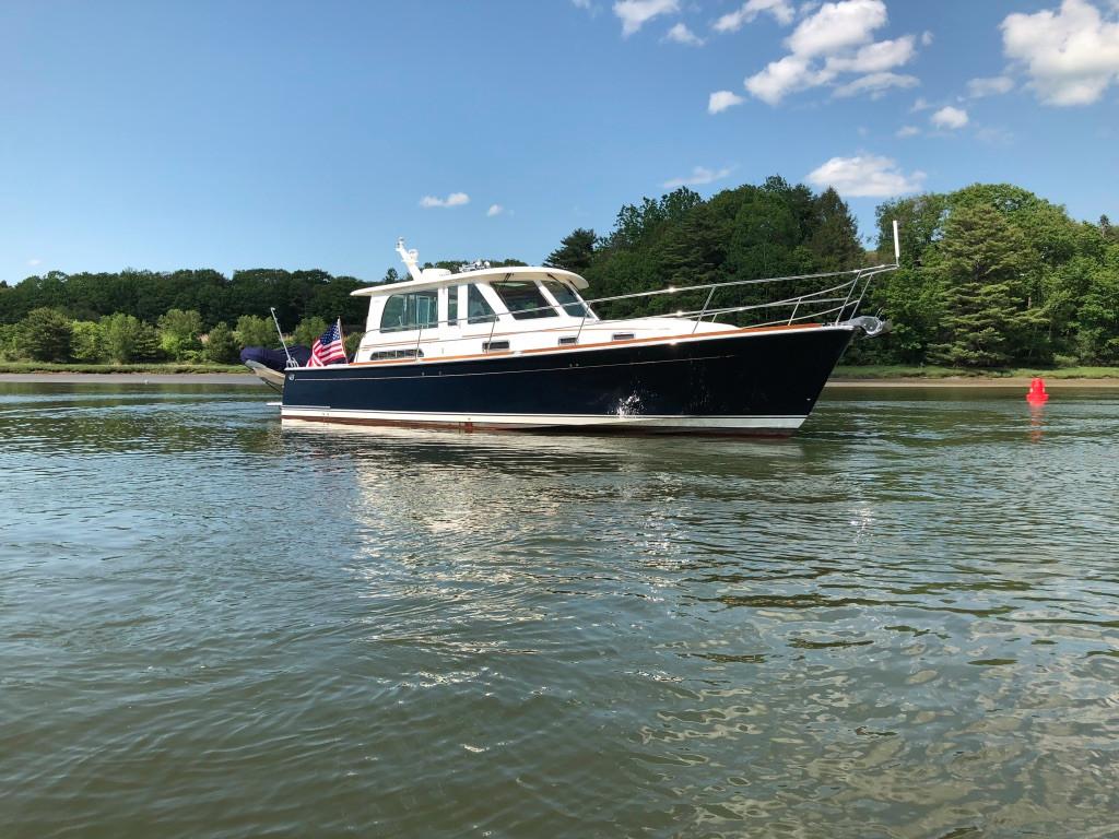 Low hour Volvo IPS 42 with Garmin electronics and more. Flag Blue hull color with Sabre White decks and Beige non-skid. Very clean and well maintained.