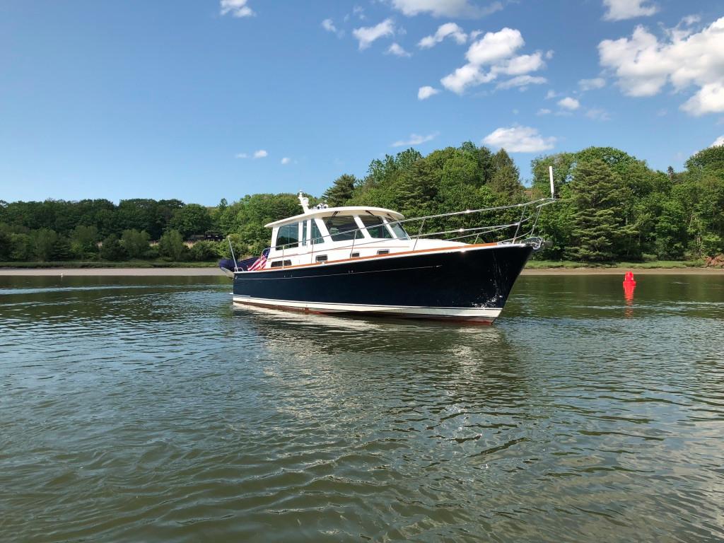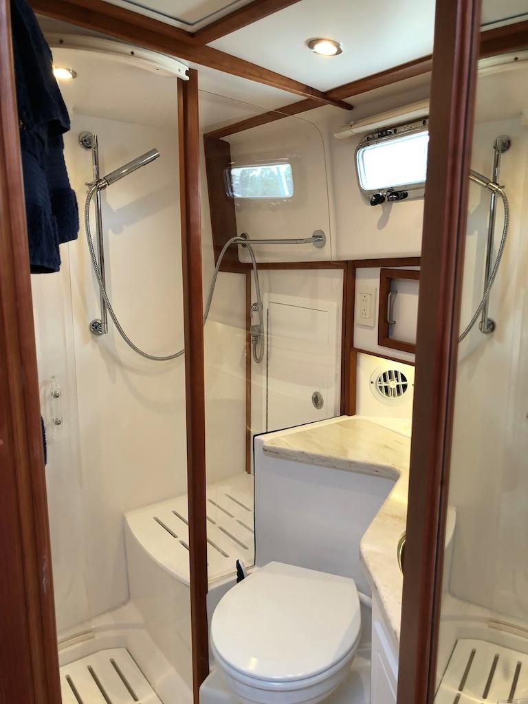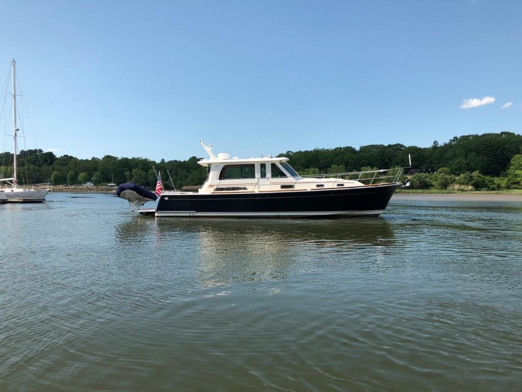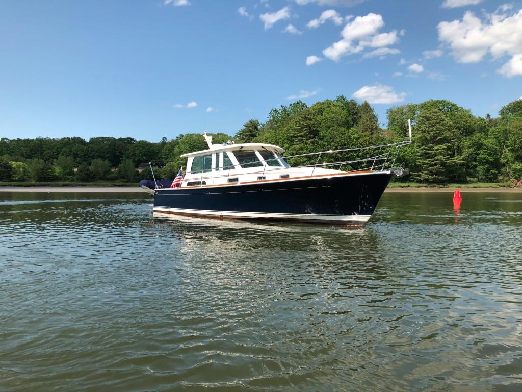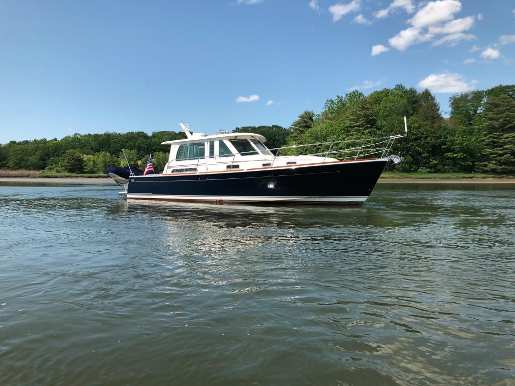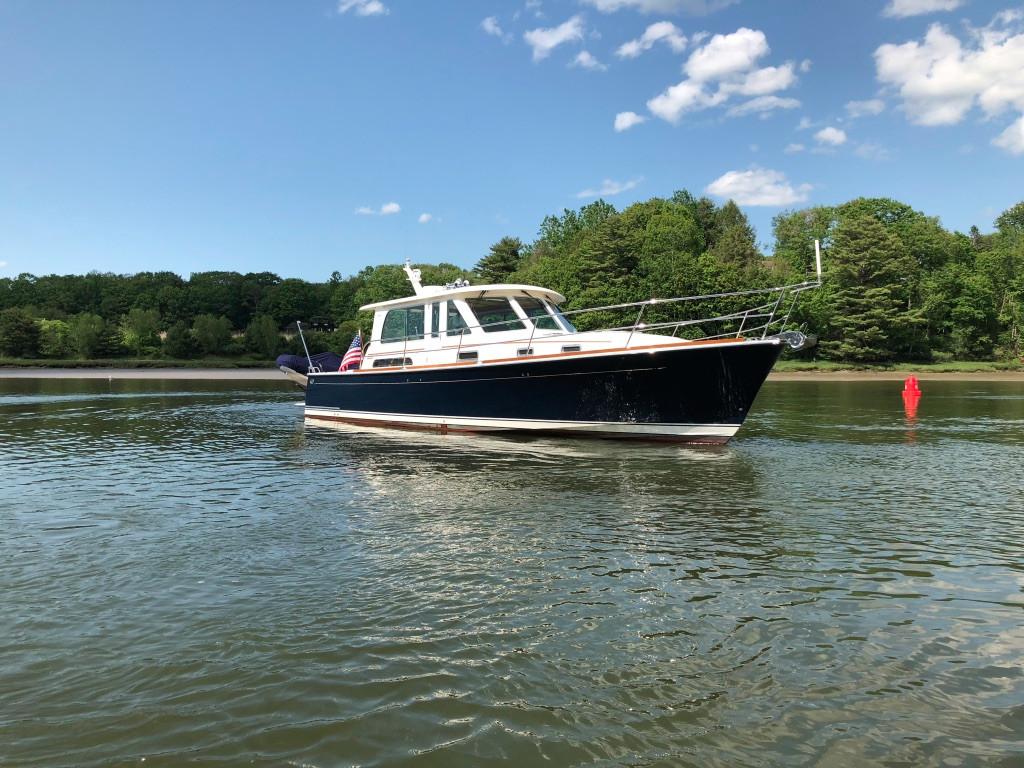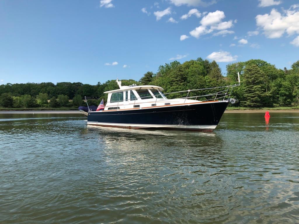 Low hour Volvo IPS 42 with Garmin electronics and more. Flag Blue hull color with Sabre White decks and Beige non-skid. Very clean and well maintained.
