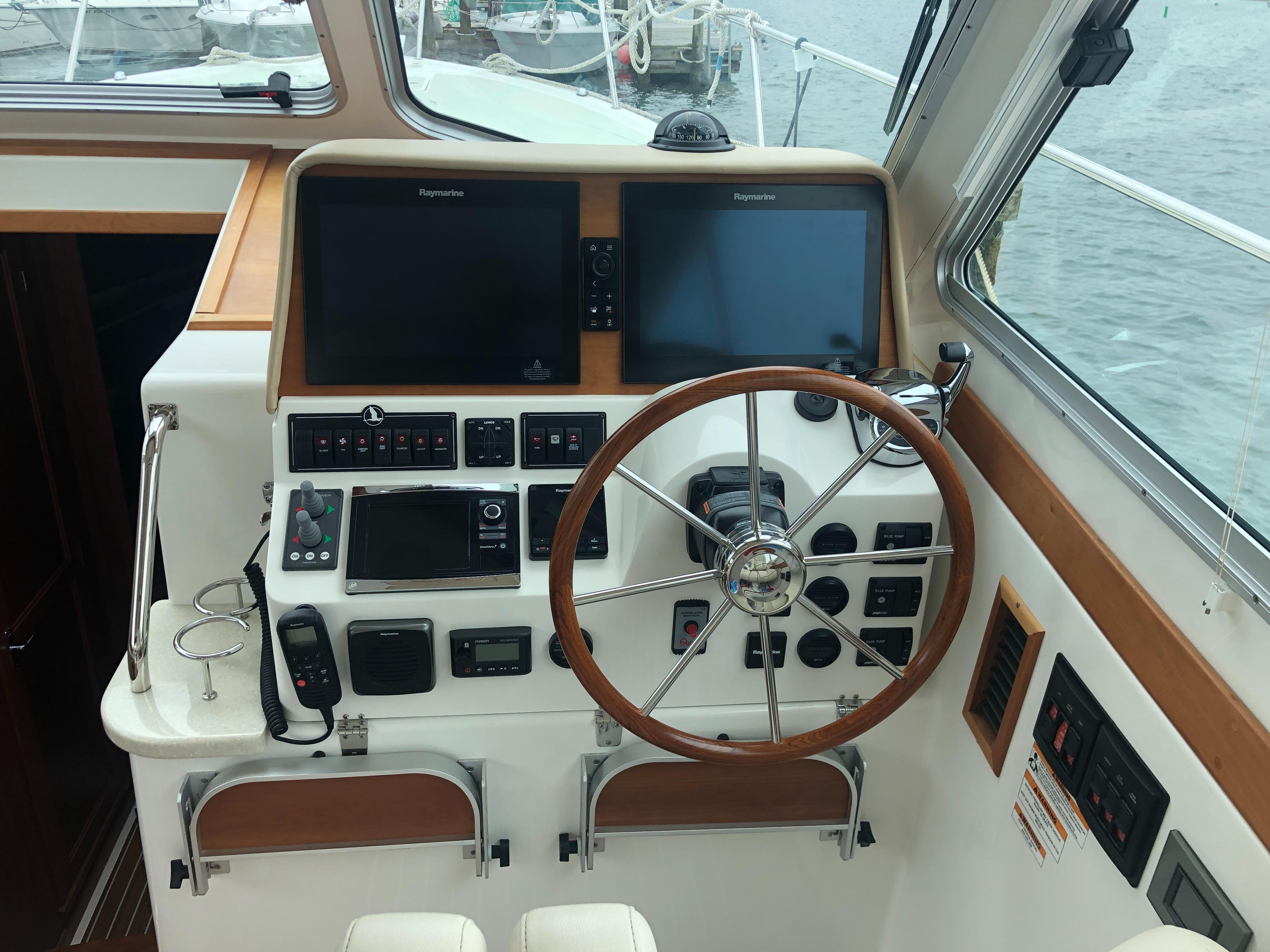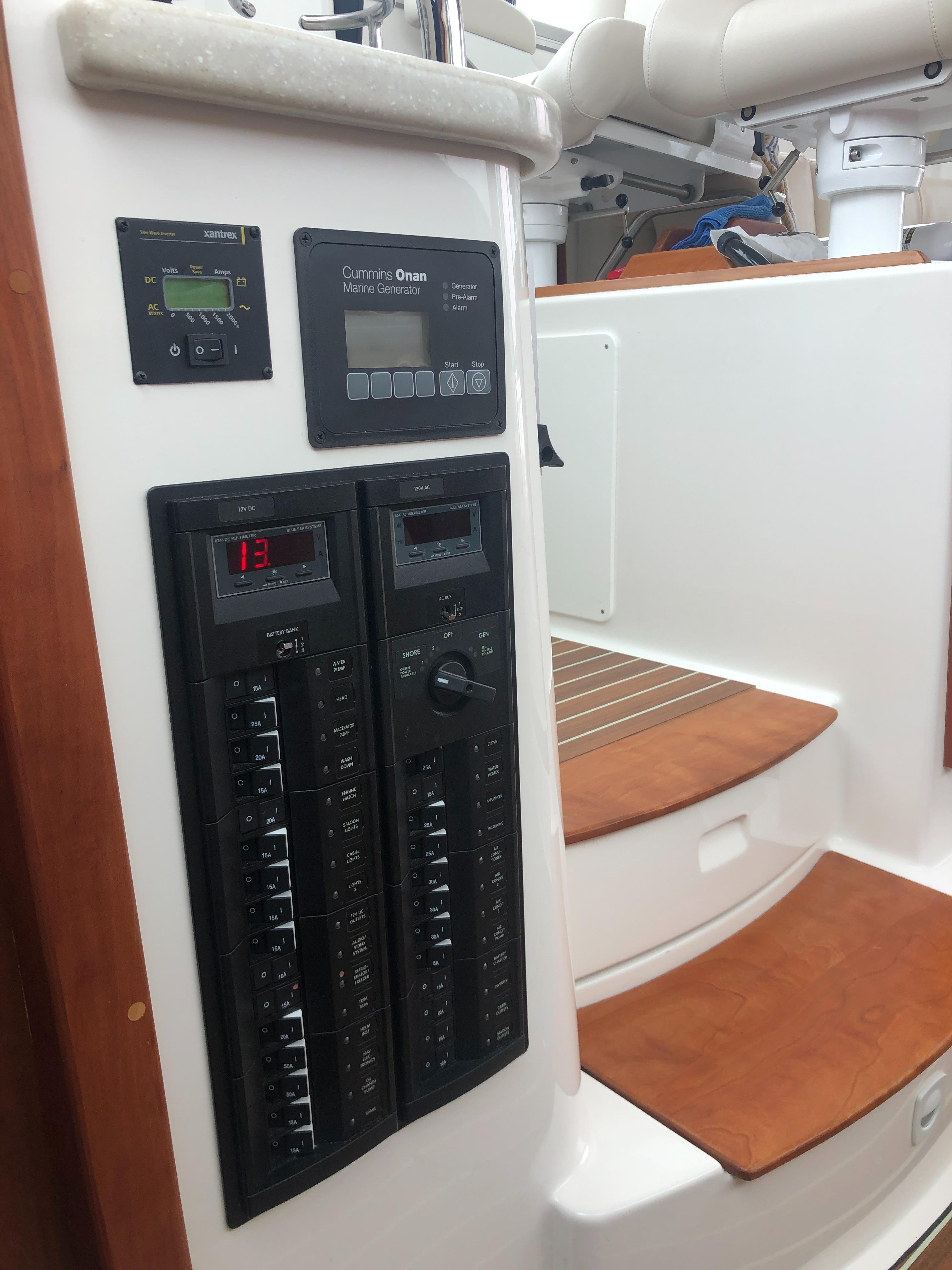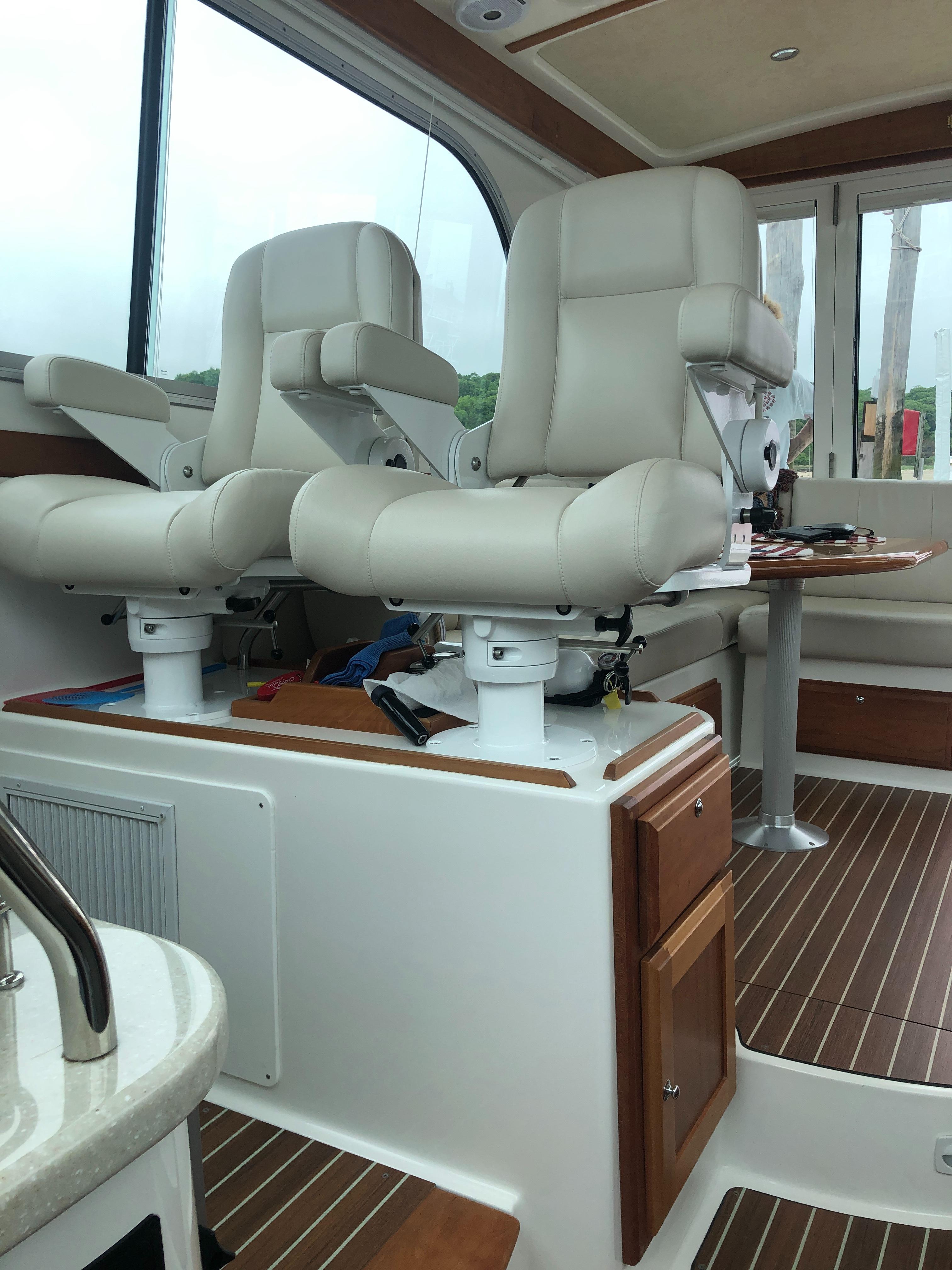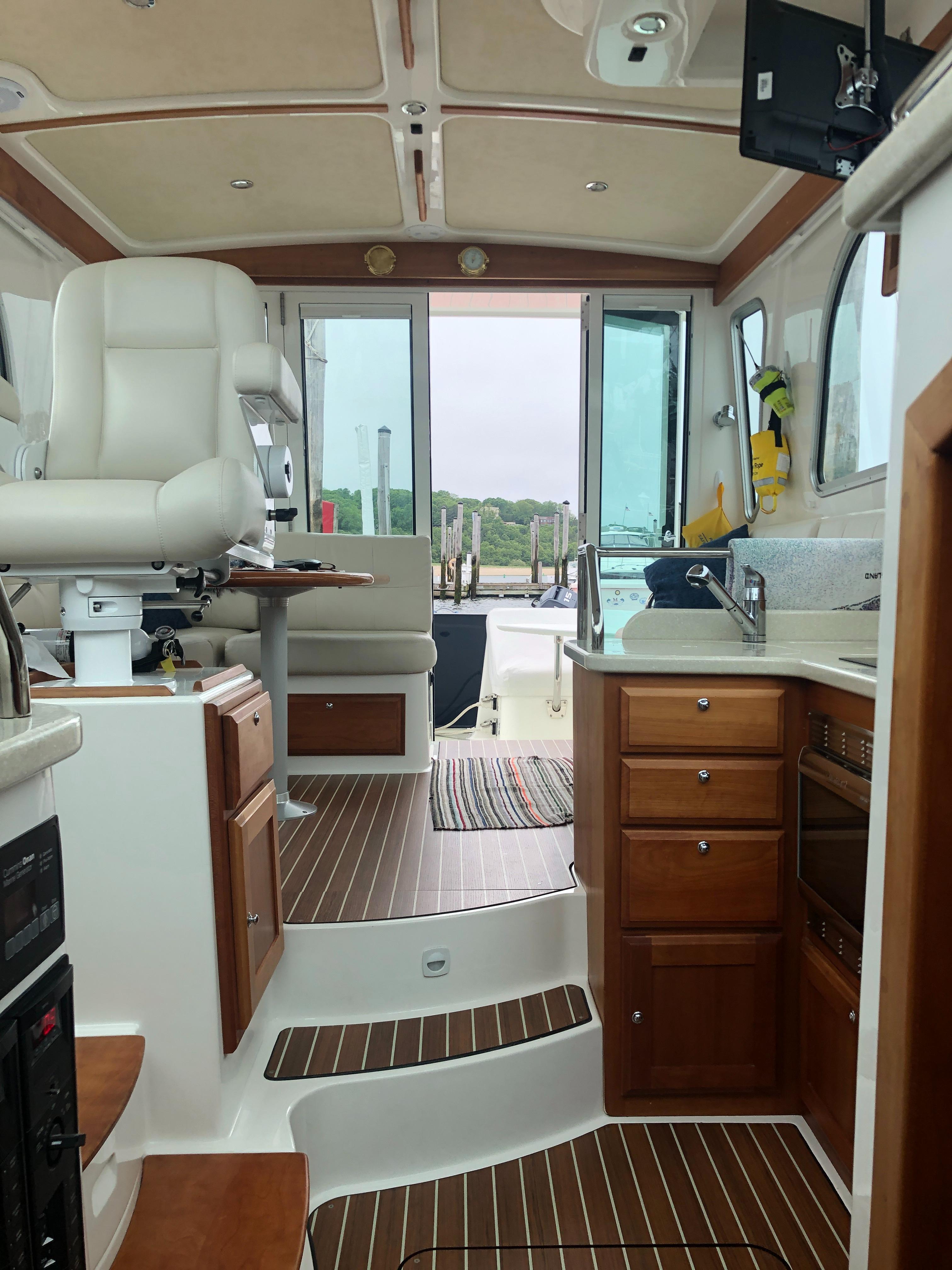 Varnished Cherry interior joinery on molded composite hull liner