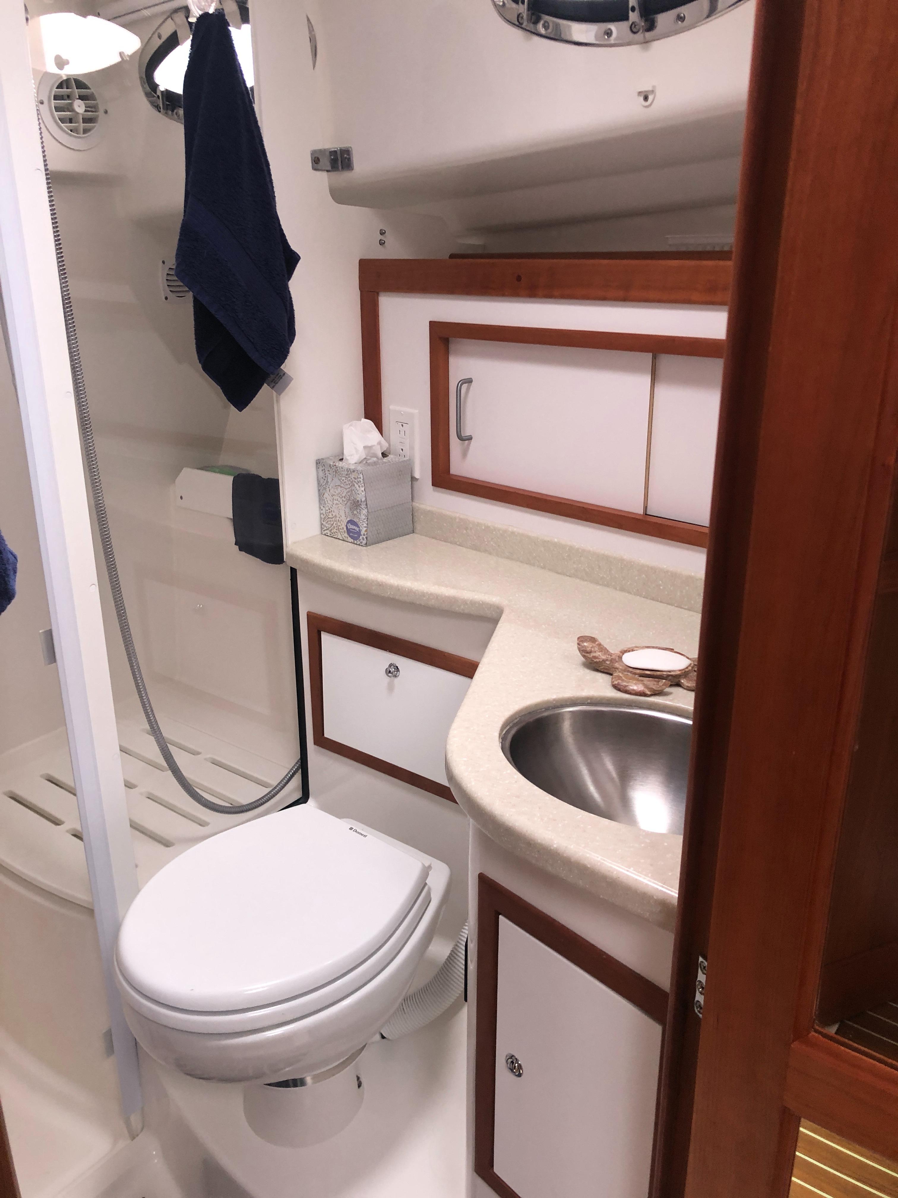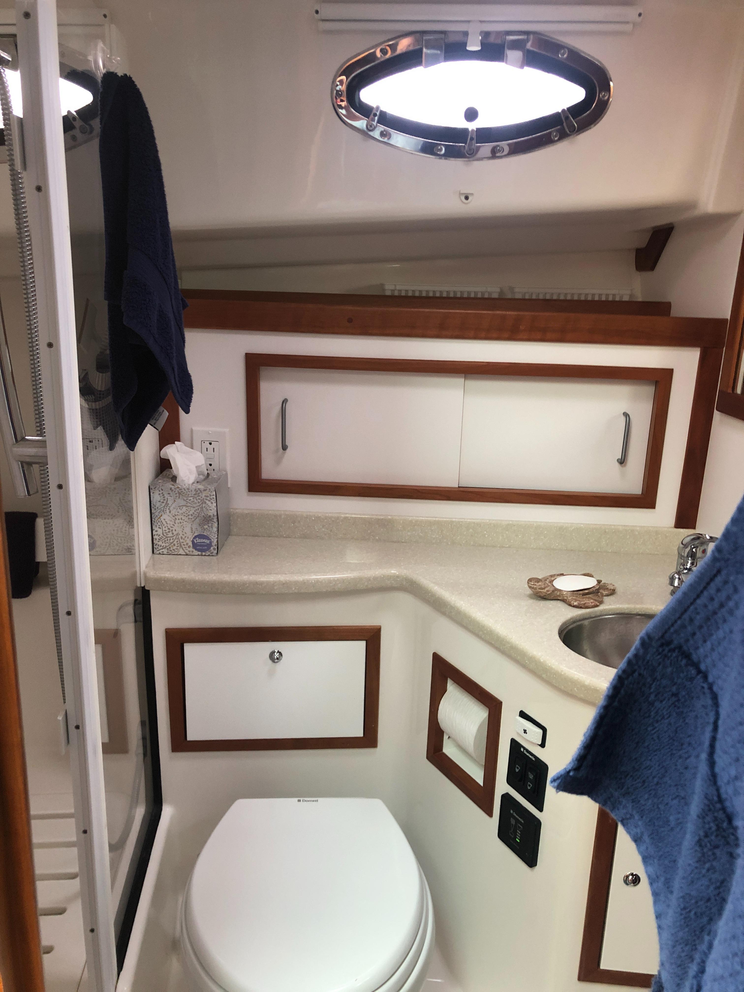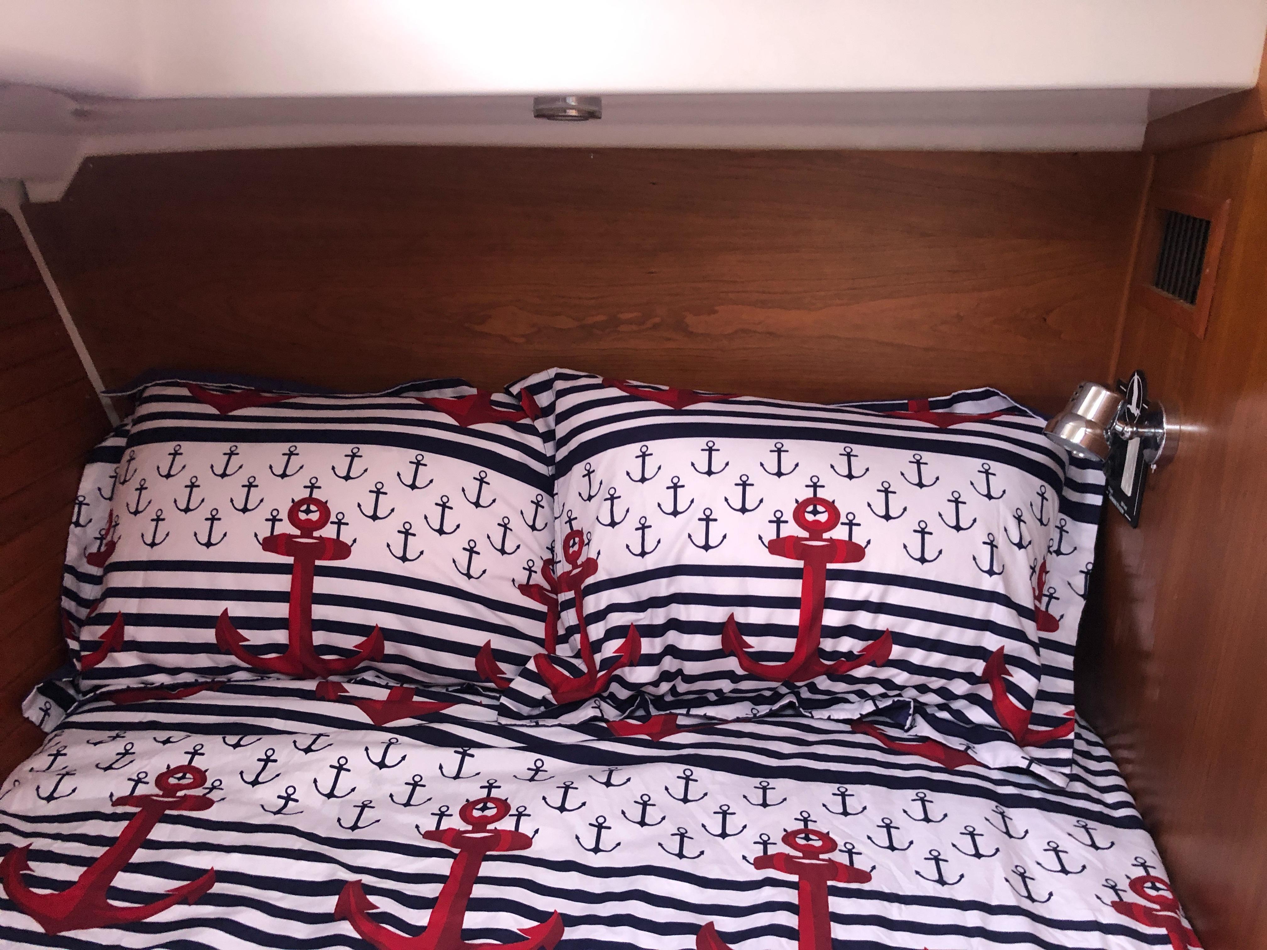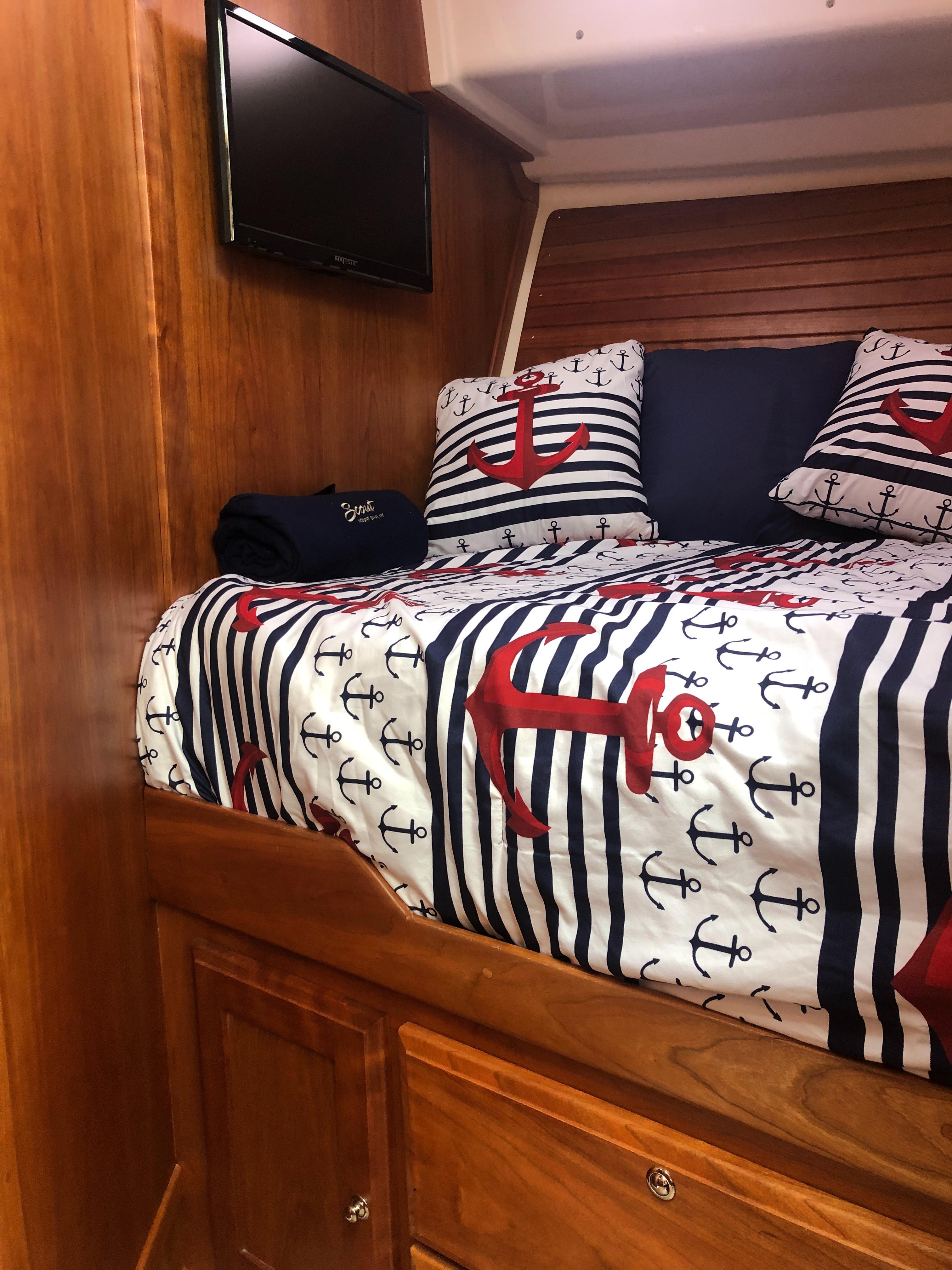 Island queen berth w/ drawers and storage below