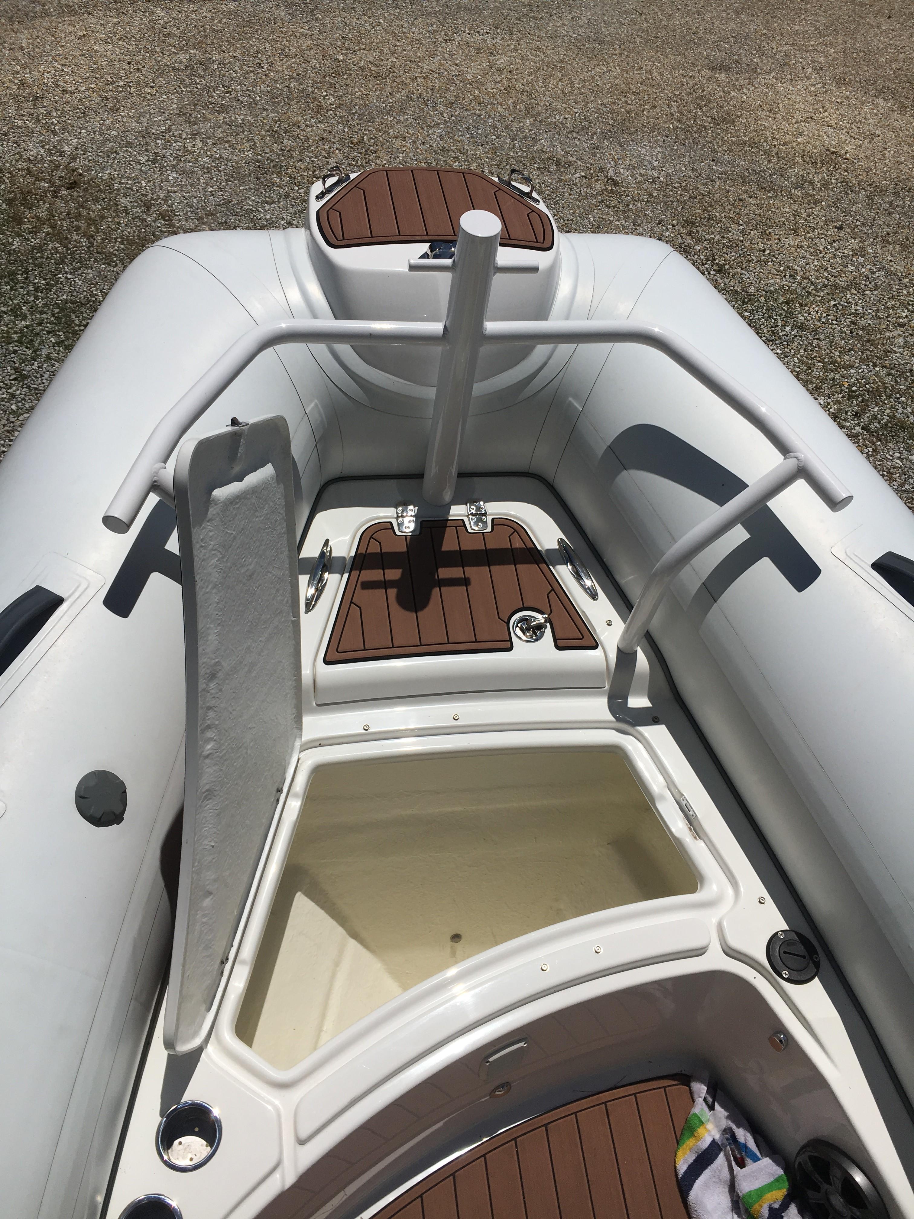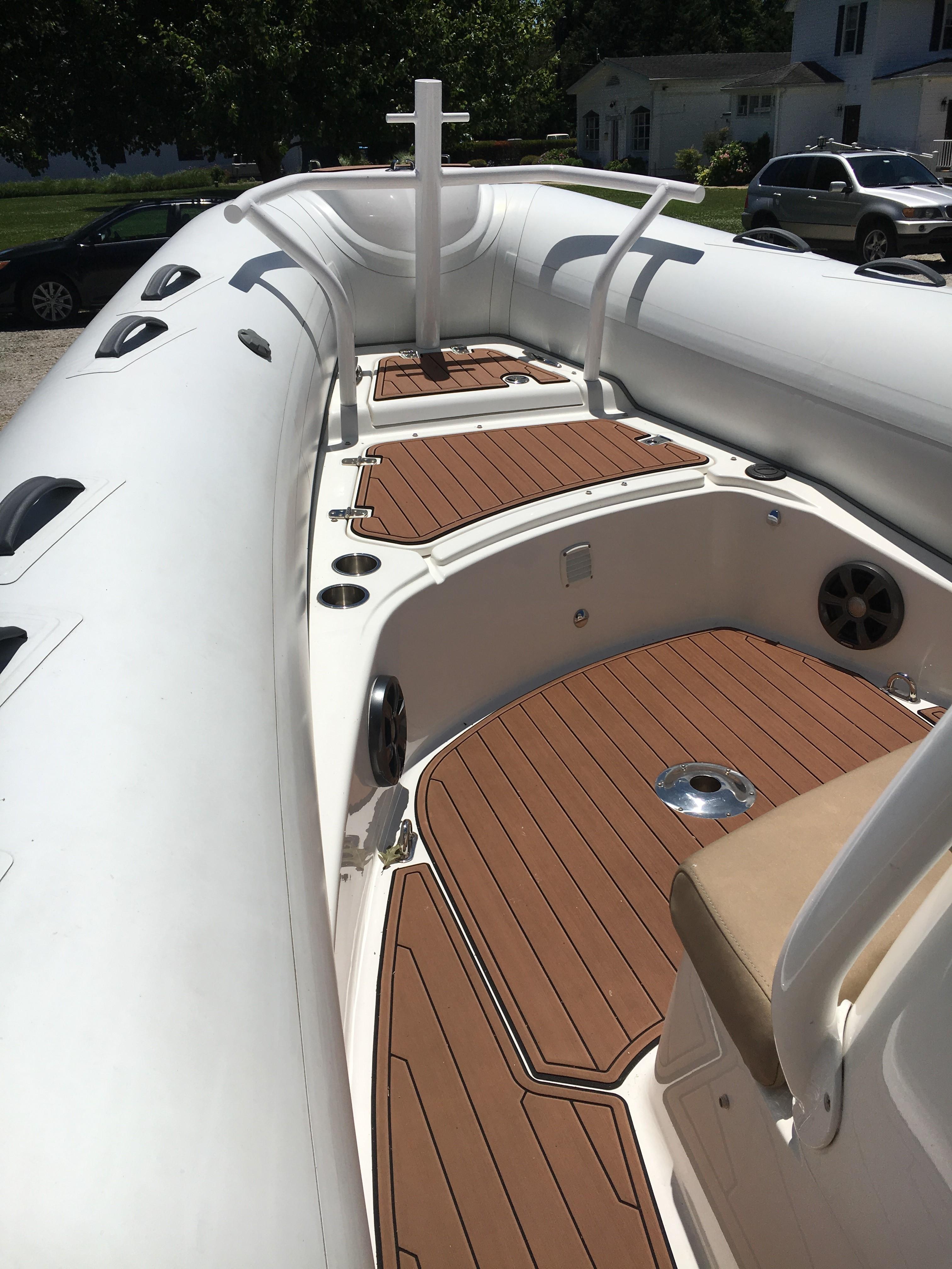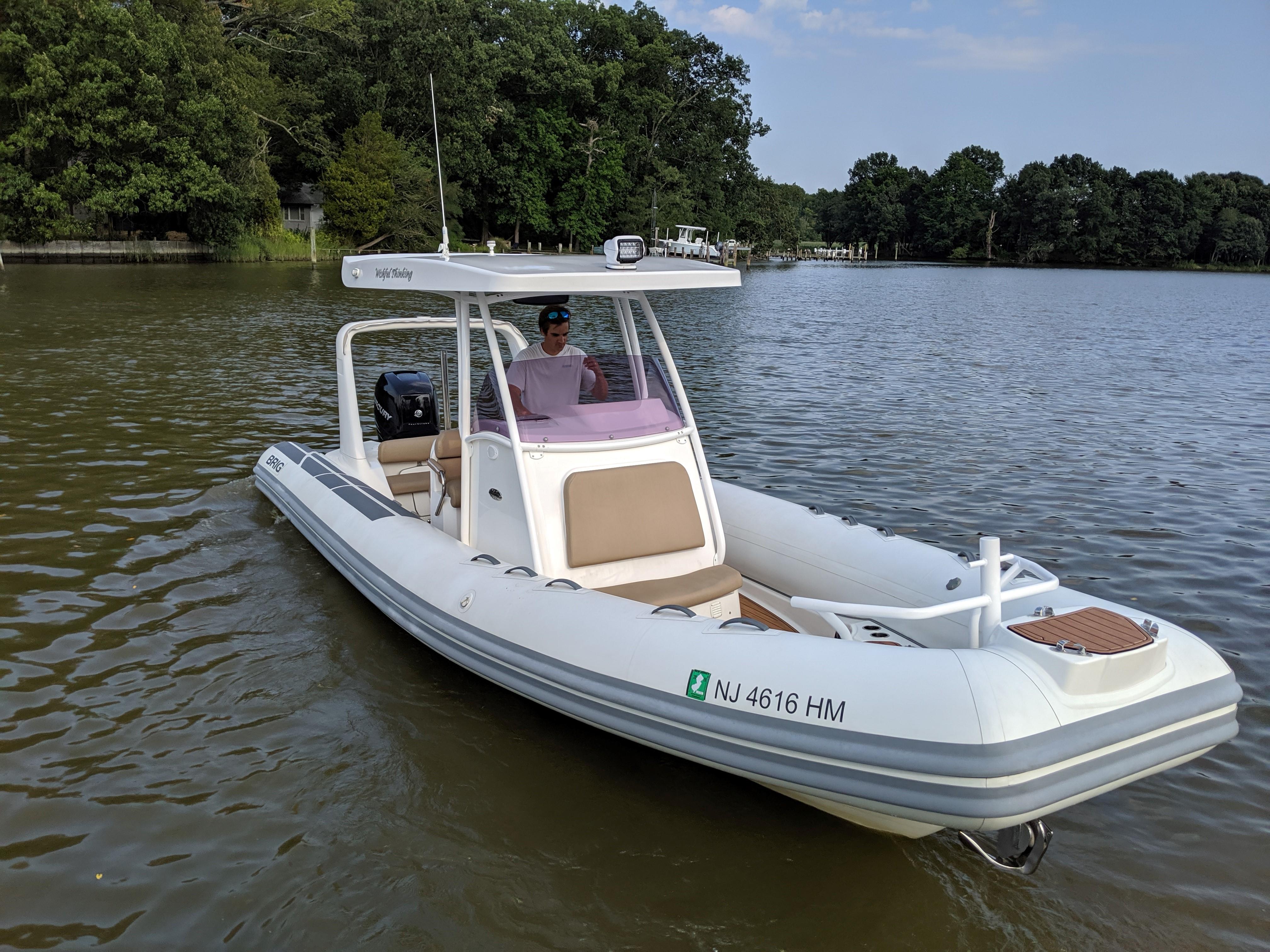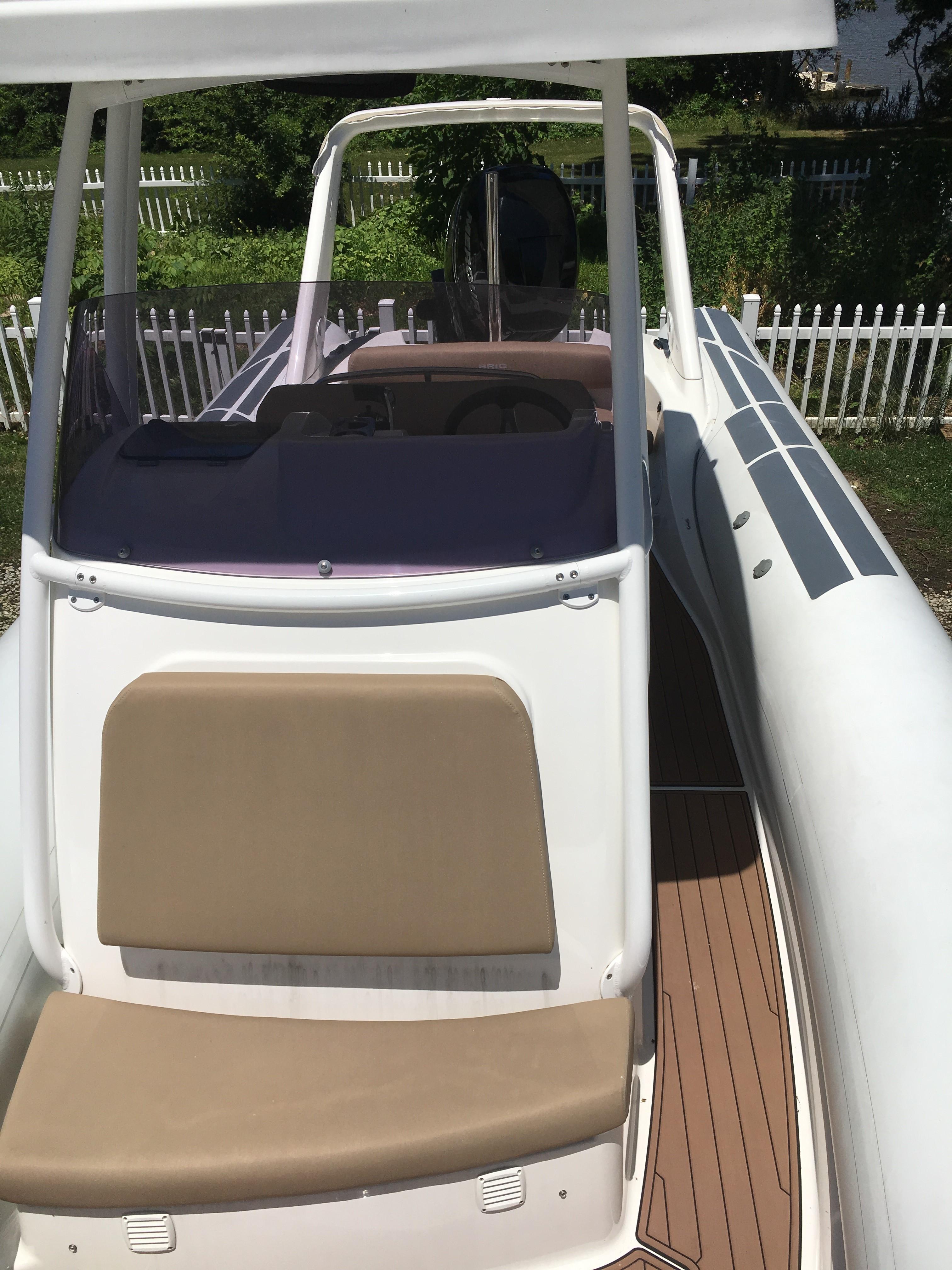 Wishful Thinking is the only BRIG Eagle 780 with a custom fiberglass hardtop AND fiberglass arch available today! Exceptional performance is a given on a BRIG inflatable, but the experience is magnified with the Mercury 300HP Verado WITH 40 HOURS! Electronic throttle and shift provide effortless precision in tight quarters. The list of options on Wishful Thinking requires more space than this field allows. Unique features include a manual, porcelain Vacu-flush head, Simrad 12 inch GPS/chart plotter, Simrad VHF, Fusion stereo and custom bow rail. Also included in the price is a 2018 tandem axle Continental trailer.