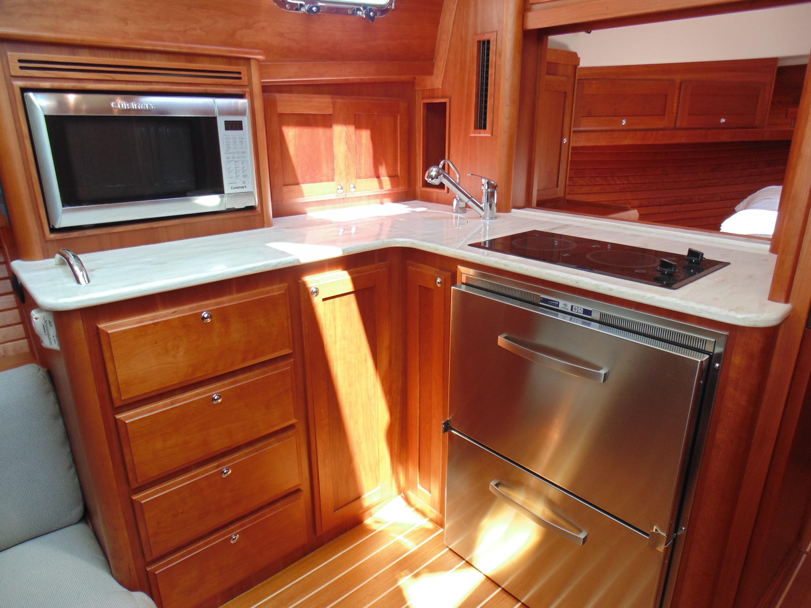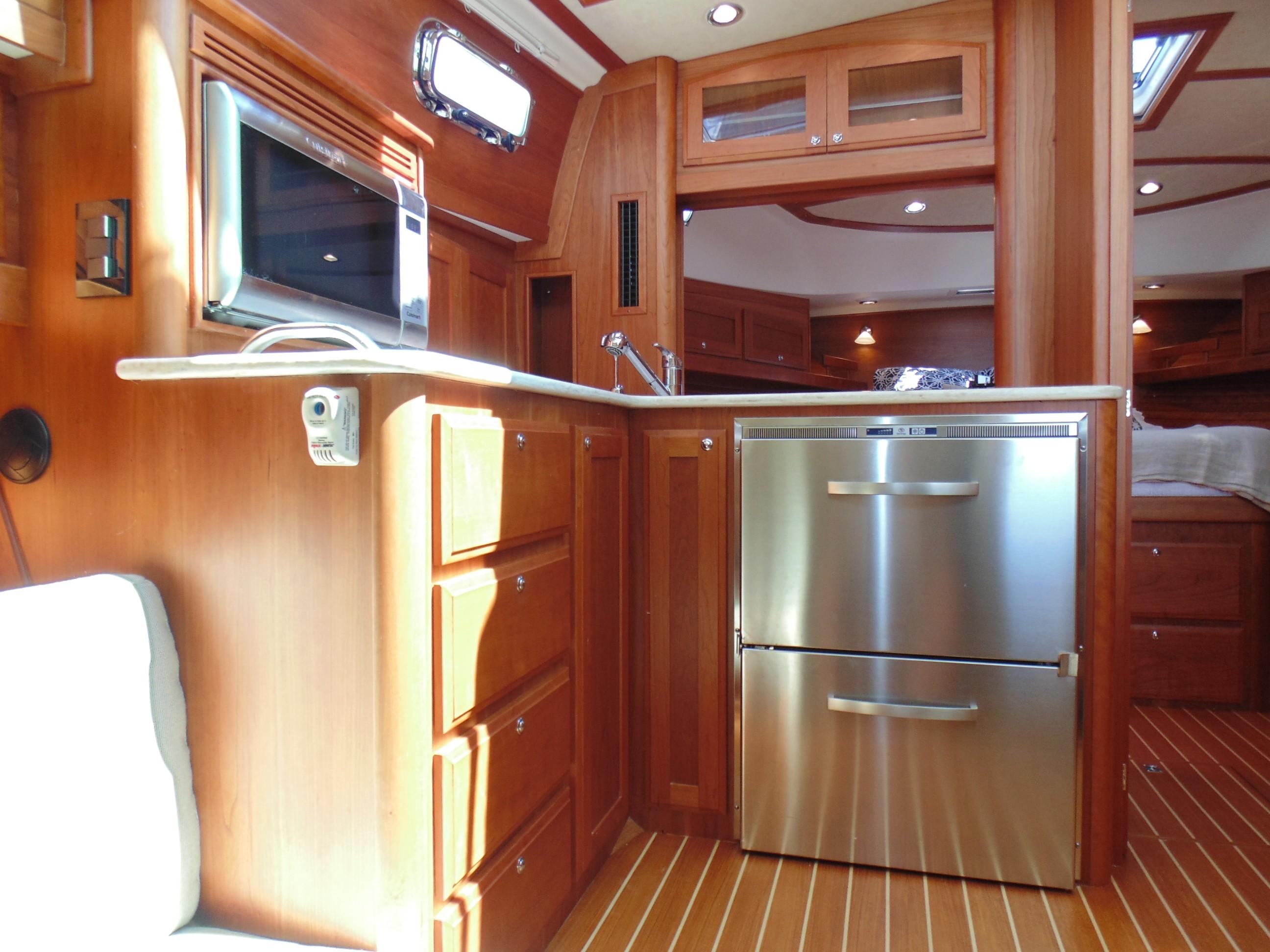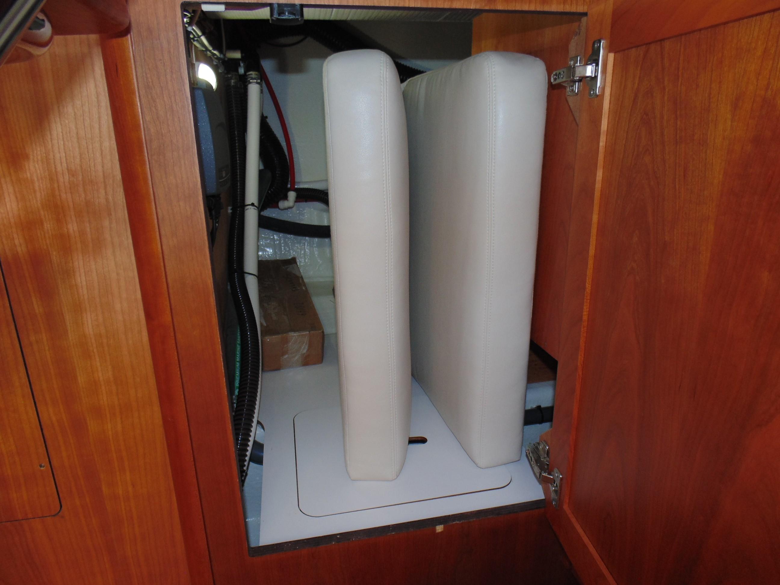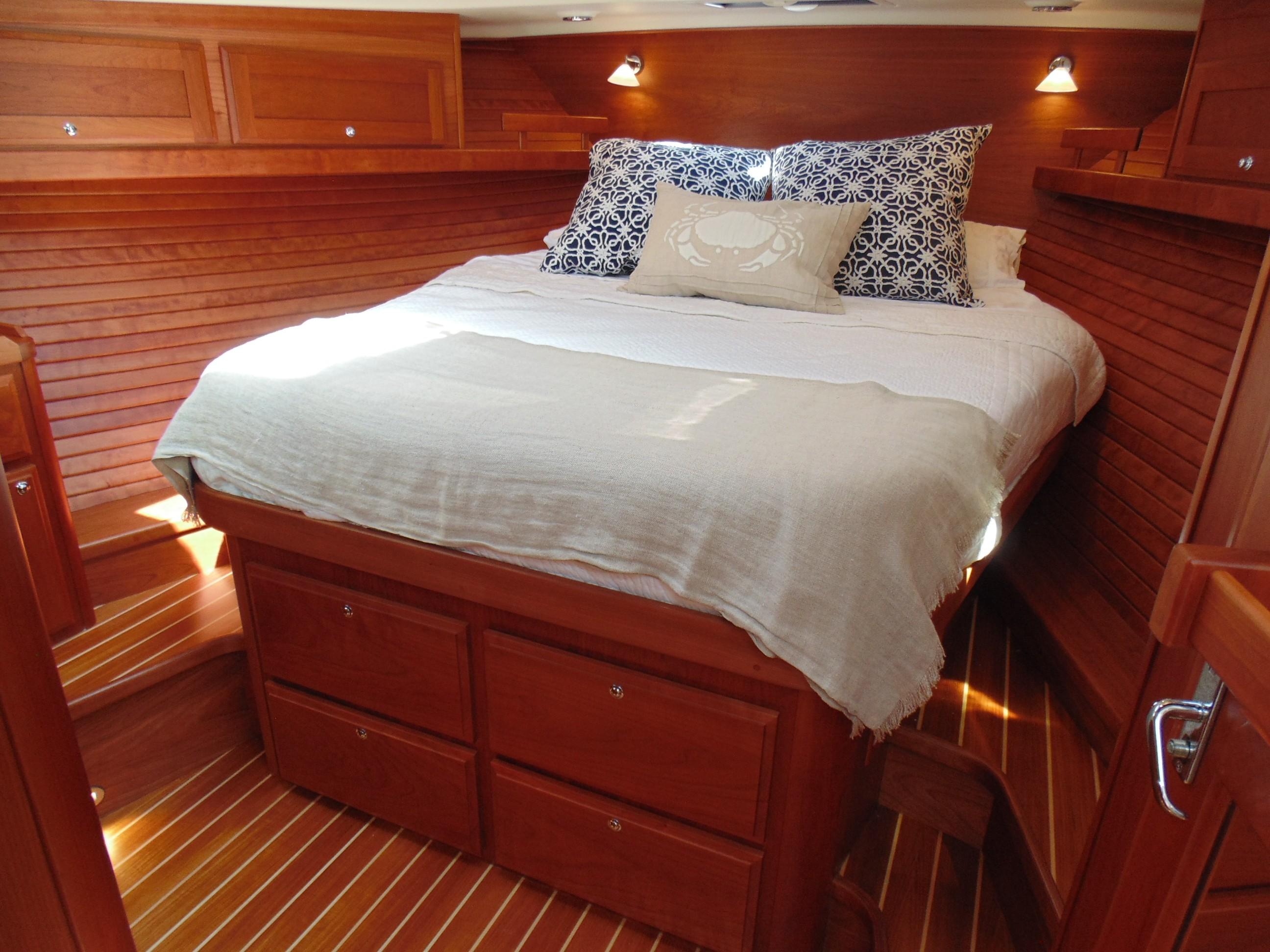 Build (2) large drawers under fwd berth, same size as bottom drawers, in lieu of std top (3) drawers, (4) large matching drawers in all