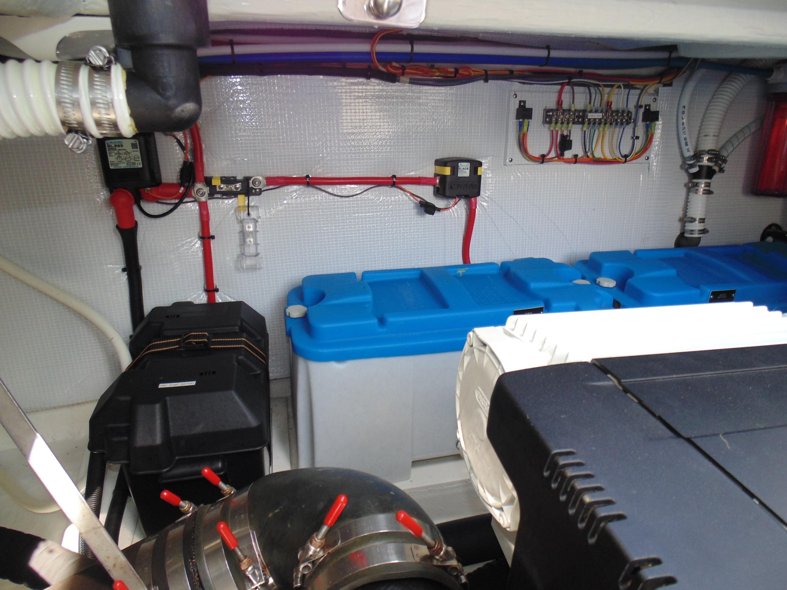 Two 4D 210 Amp hour deep cycle ship's service batteries