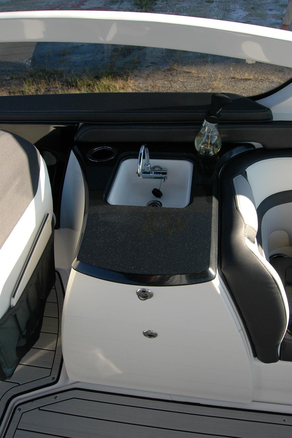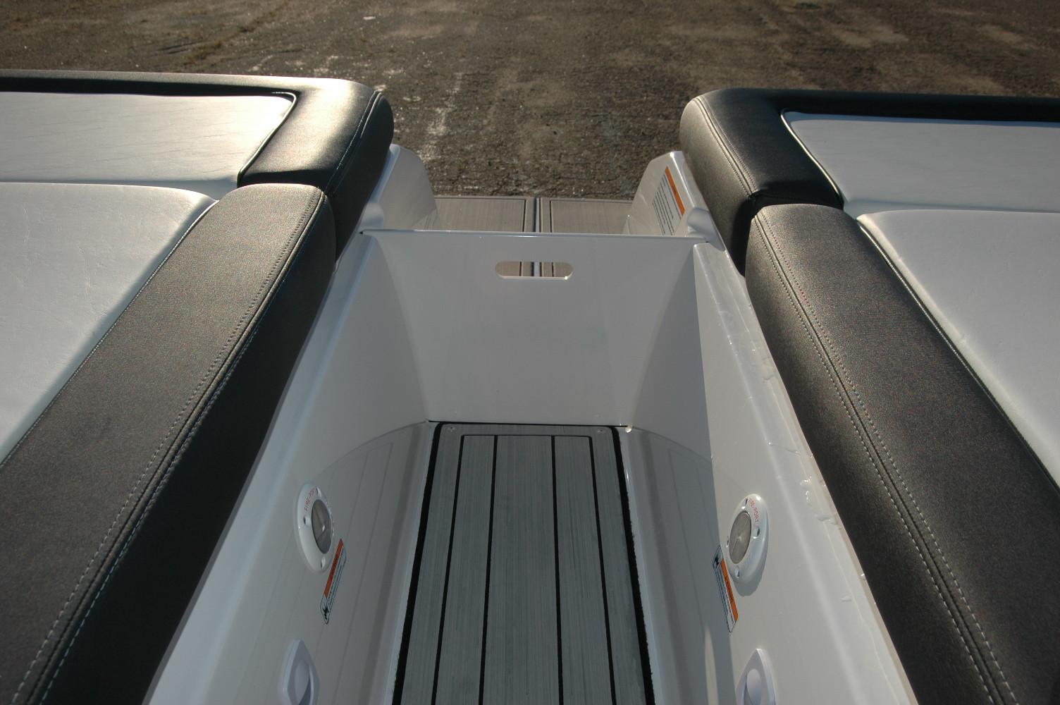 Starting the bow, the boat offers forward-facing seating for two in a lounge position, or if you like, you can fill in the space with extra cushions for a completely padded area. Ample storage can be found below.
